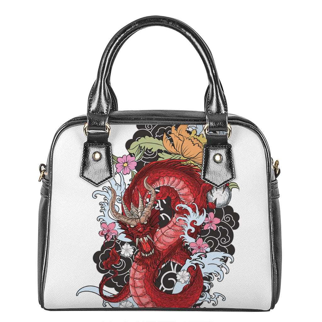 Red Japanese Dragon Tattoo Print Shoulder Handbag