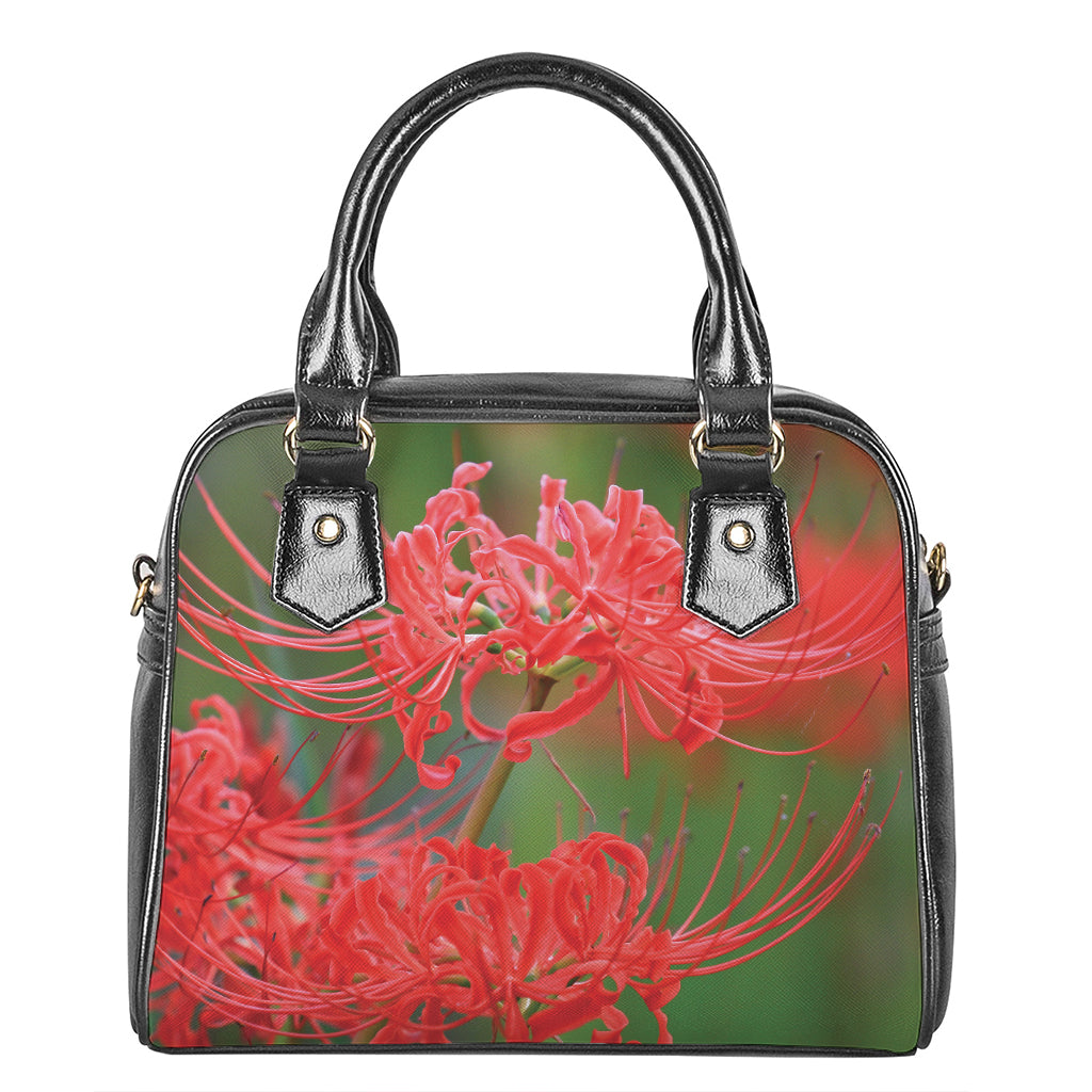 Red Japanese Amaryllis Pattern Print Shoulder Handbag