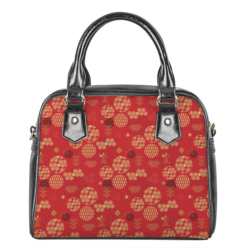 Red Japanese Flower Pattern Print Shoulder Handbag