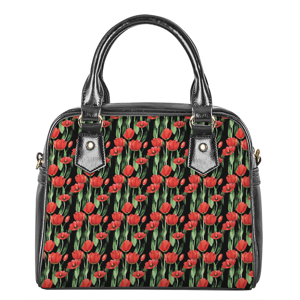 Red Watercolor Tulip Pattern Print Shoulder Handbag