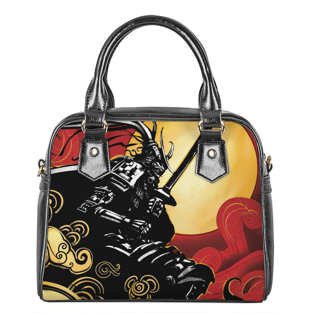 Red Sky And Golden Sun Samurai Print Shoulder Handbag