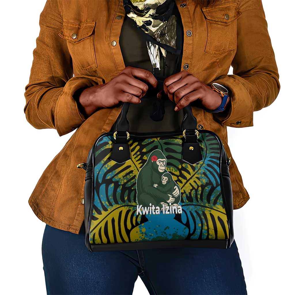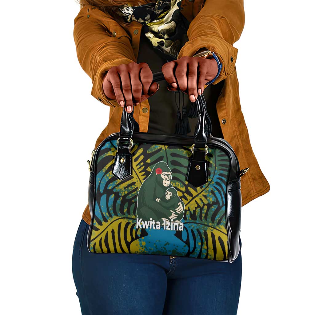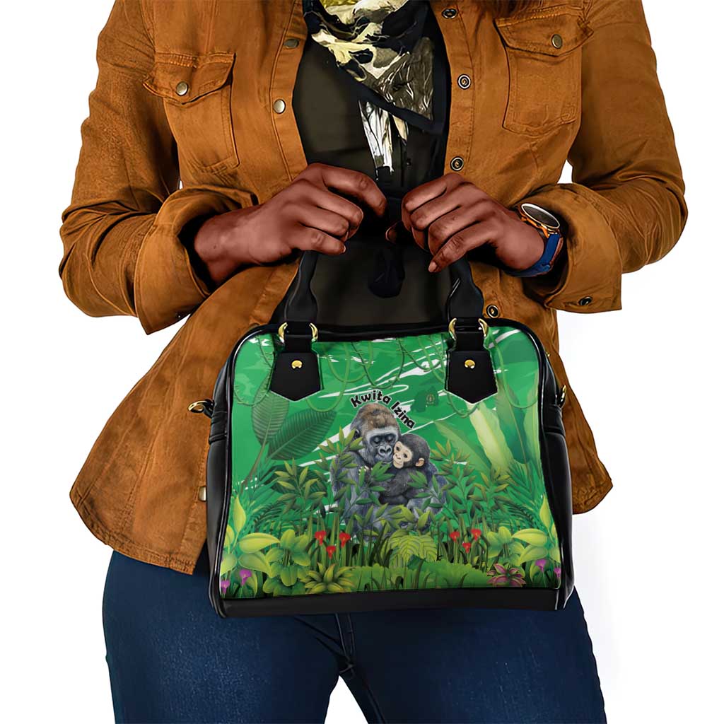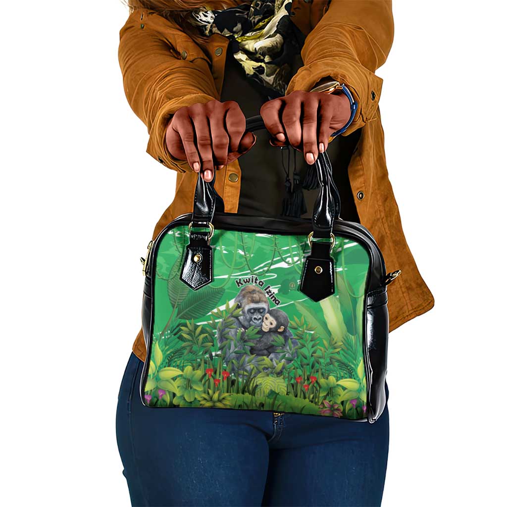 Rwanda Shoulder Handbag With Gorilla Family Kwita Izina Leaf Jungle Spirit