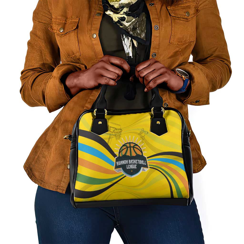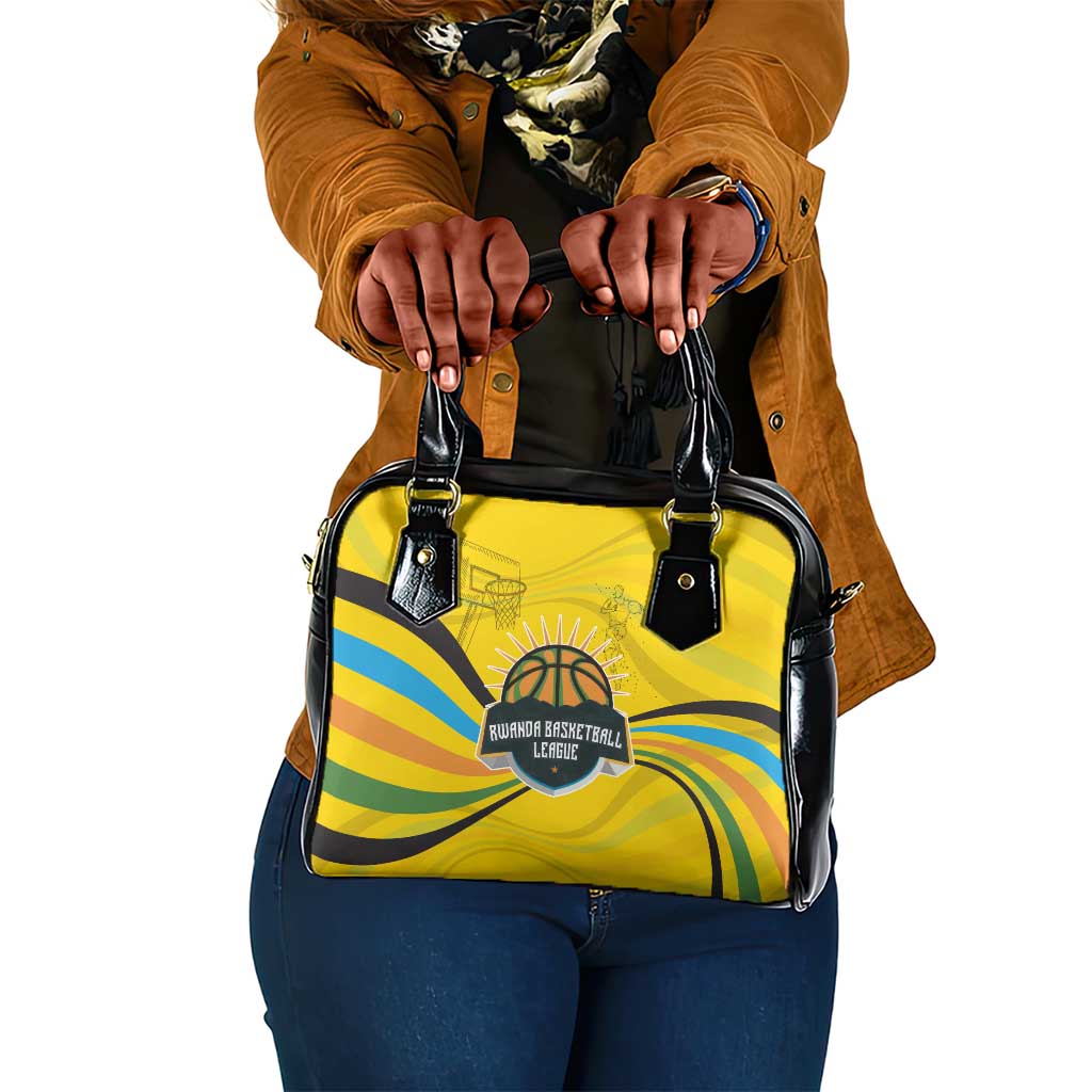 Rwanda Shoulder Handbag With Basketball League Court Hoop Yellow Wave Spirit