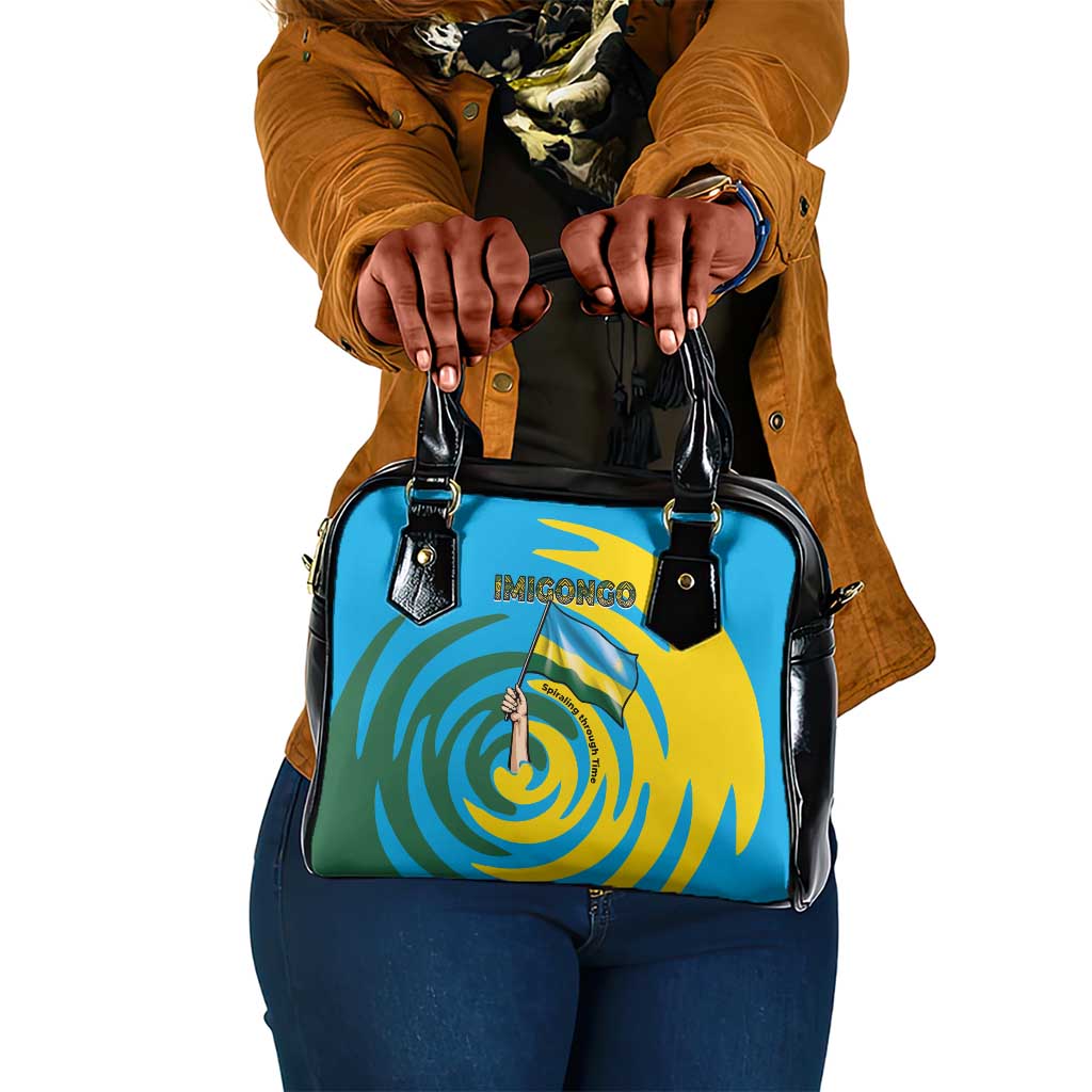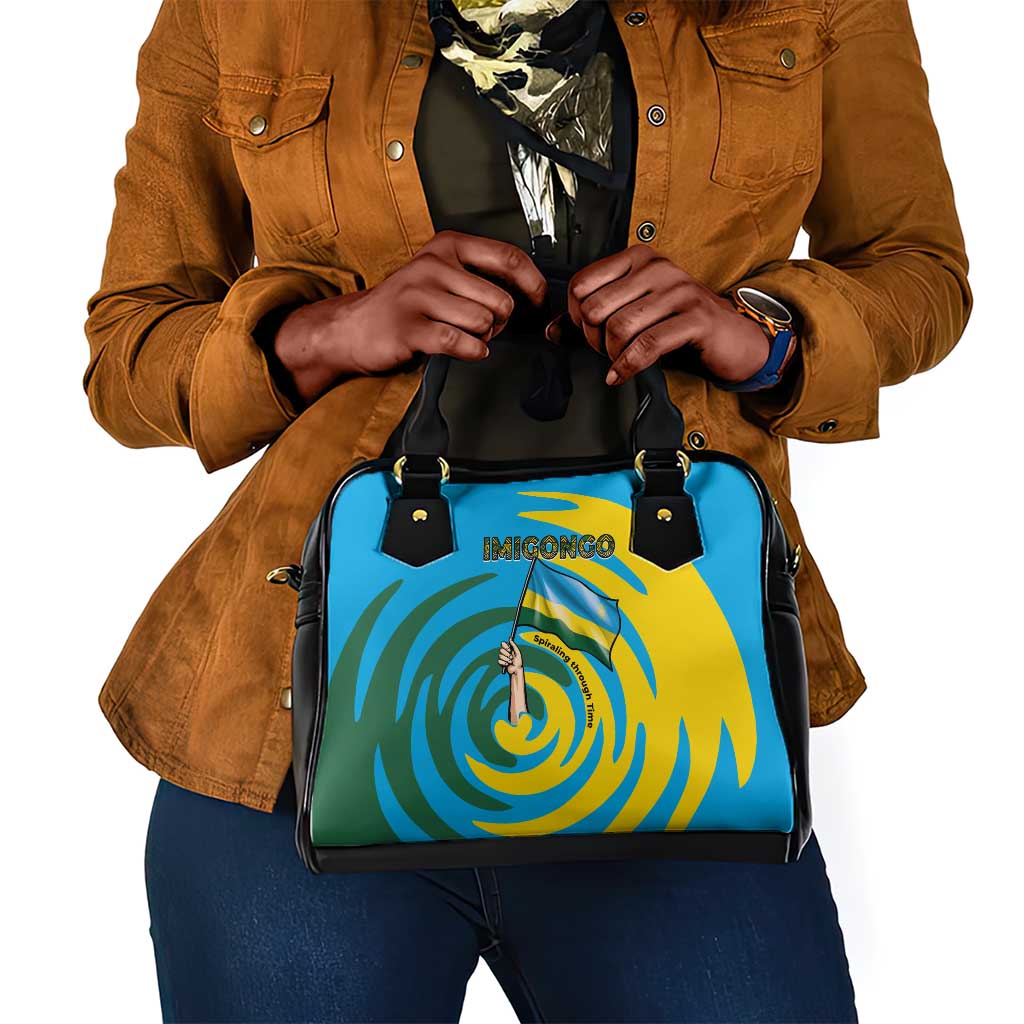 Rwanda Shoulder Handbag With Imigongo Spiraling Flag Hand Wave Time Spirit