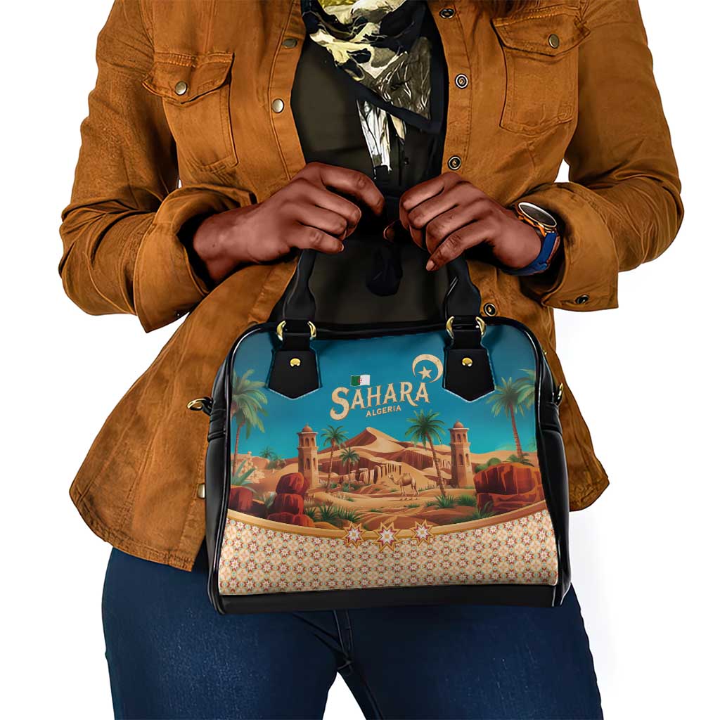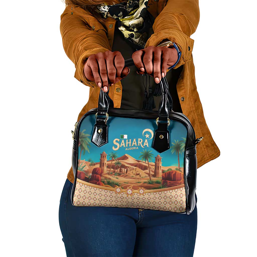 Sahara Algeria Shoulder Handbag With Desert Camel Landscape And Islamic Motif Design