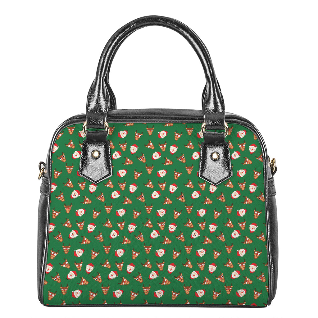 Santa Claus And Reindeer Emoji Print Shoulder Handbag