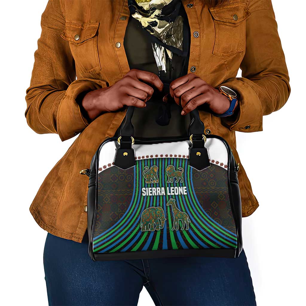 Sierra Leone Shoulder Handbag Tribal Animal Pattern Featuring Lion Elephant Giraffe And Monkey