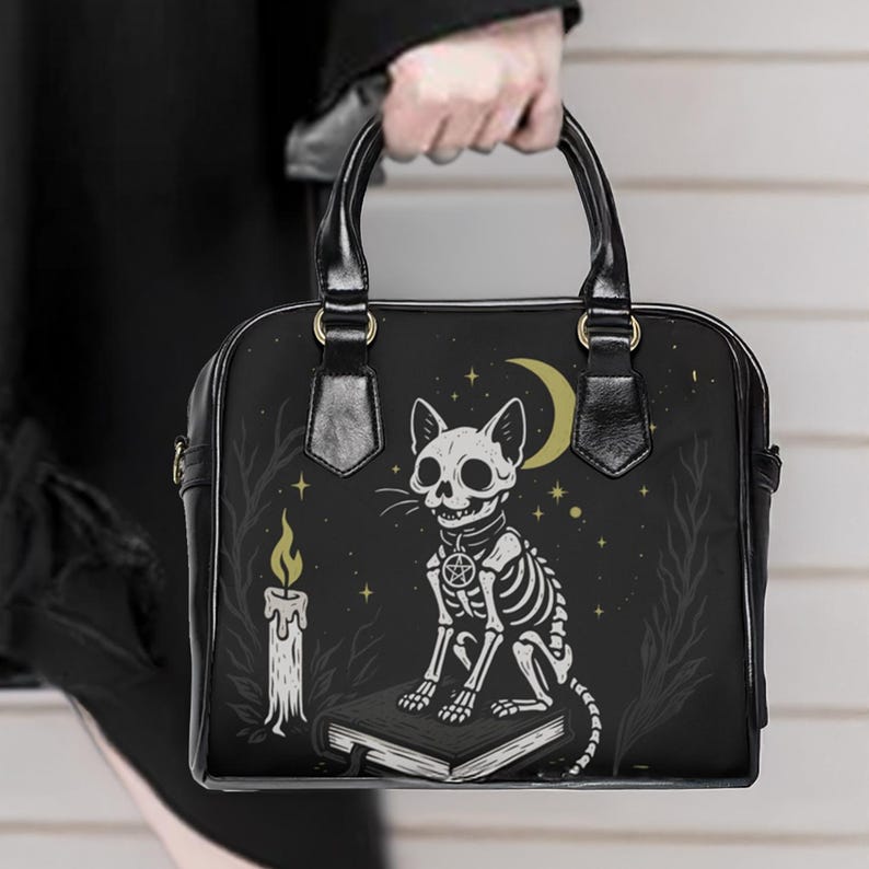 Skeleton Cat Handbag Gothic Witchy Halloween Purse