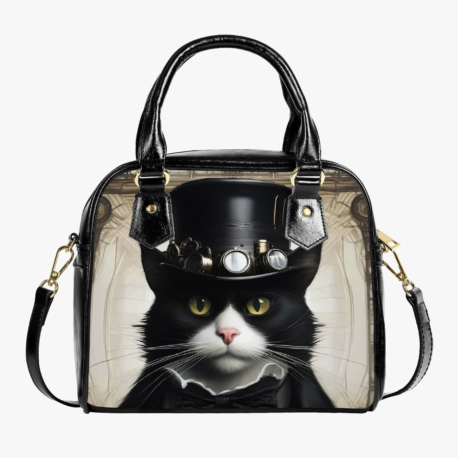 Steampunk Cat Shoulder Handbag Steamcat Purse Tuxedo Cat Fun Bag