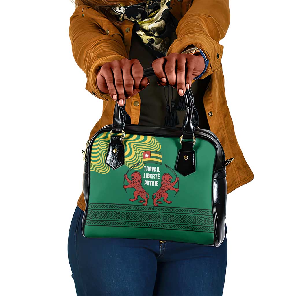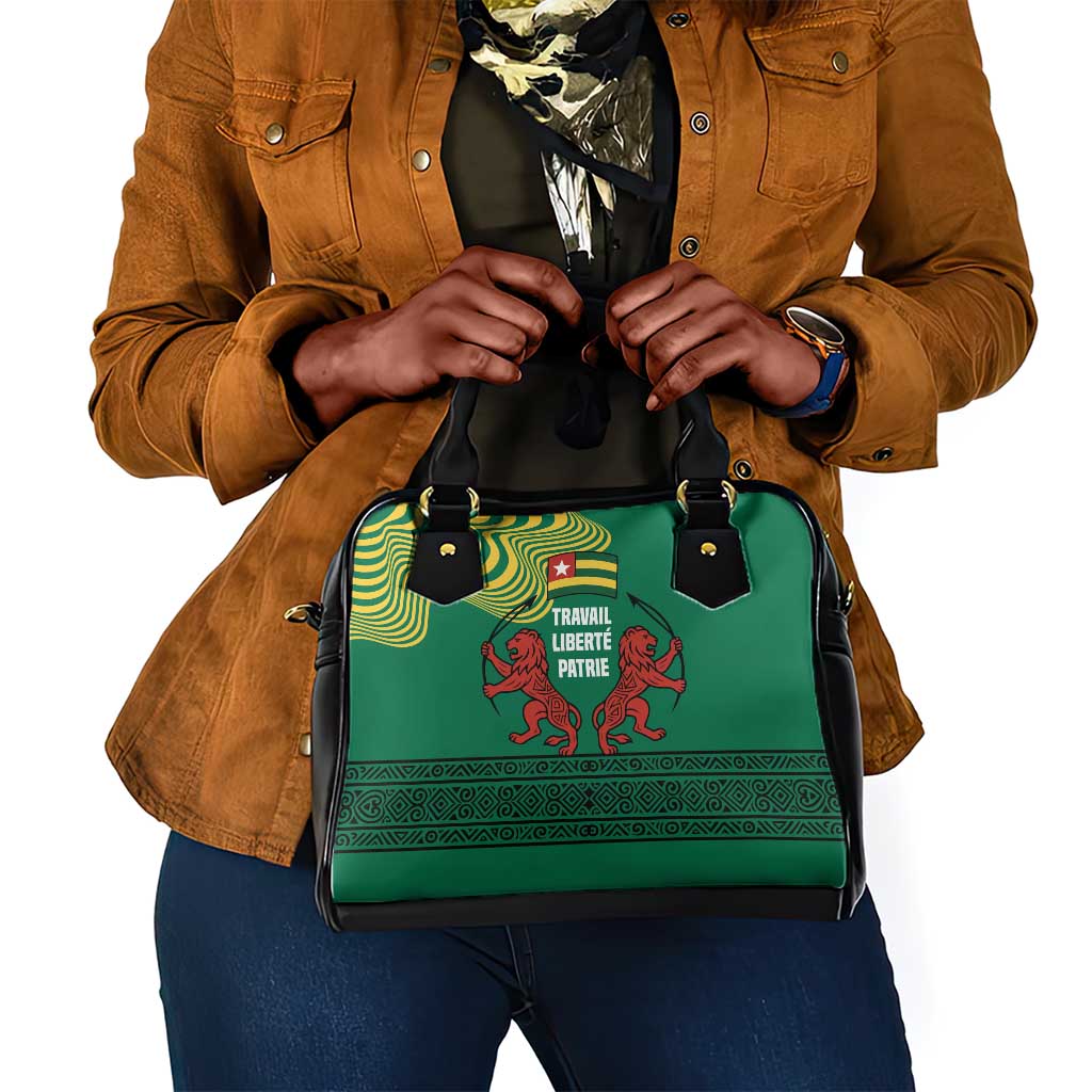 Togo Shoulder Handbag Red Twin Lions And Travail Liberty Patrie Slogan