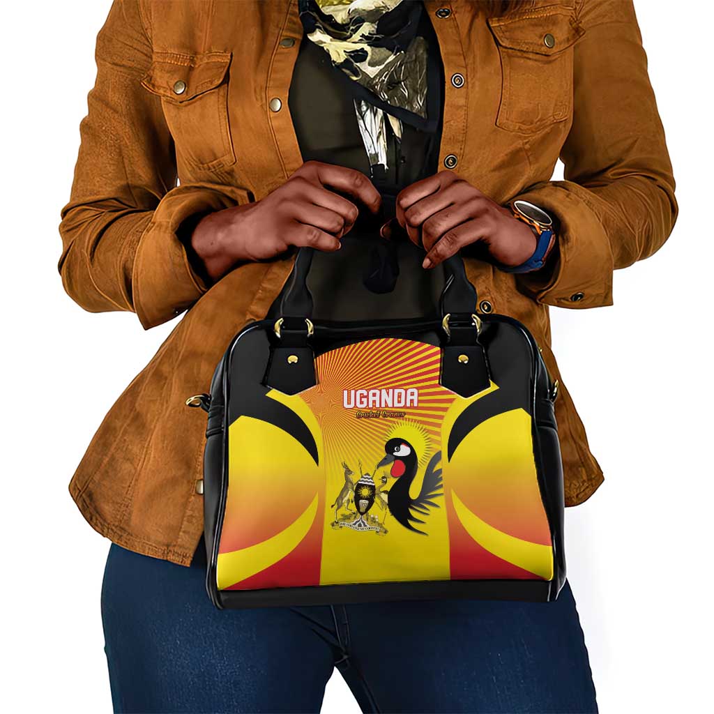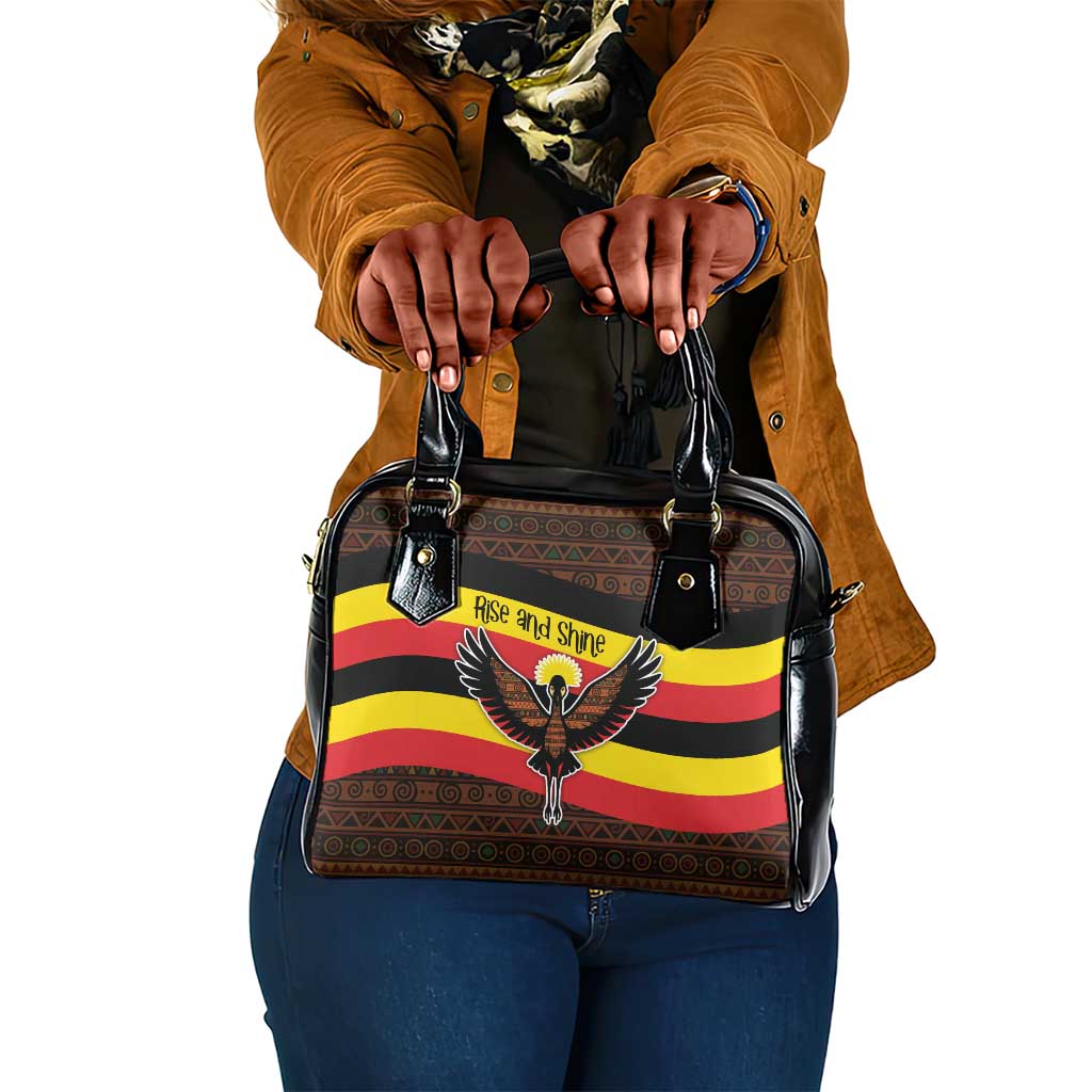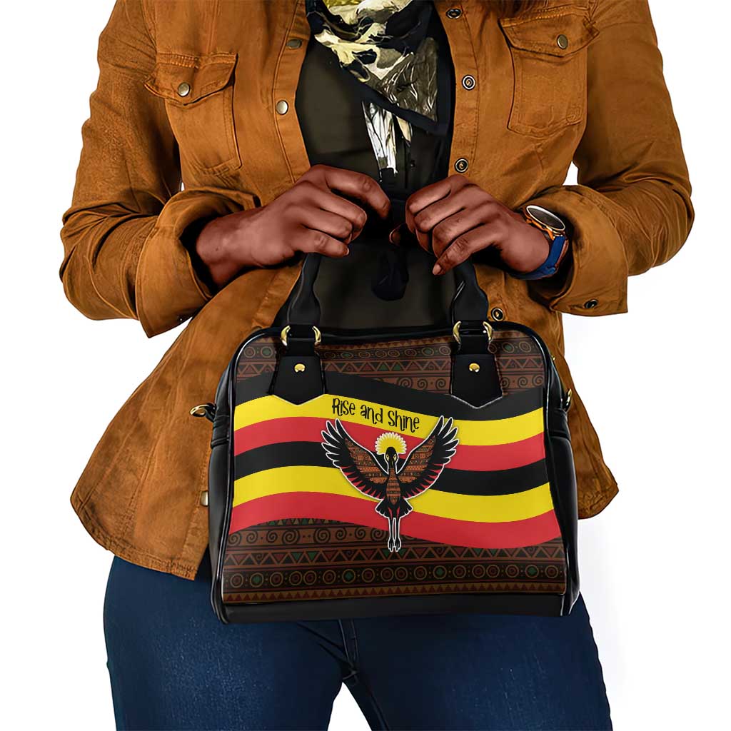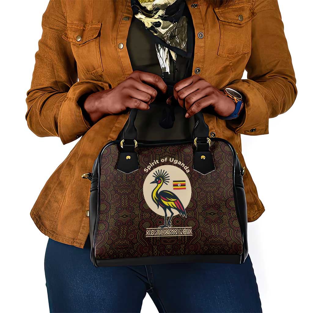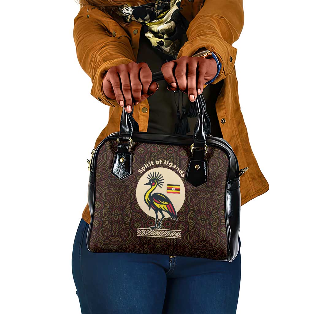 Uganda Shoulder Handbag Crested Crane And Rise And Shine Tribal Pattern Design