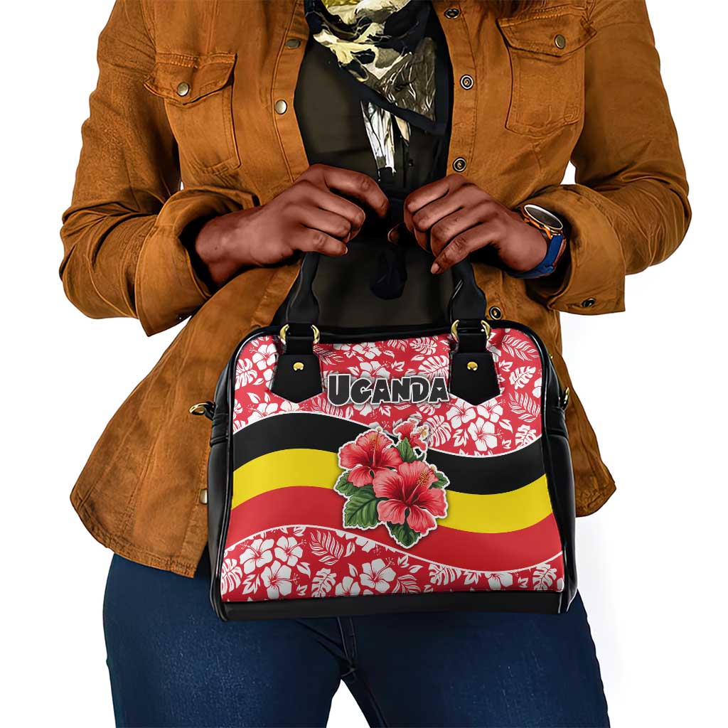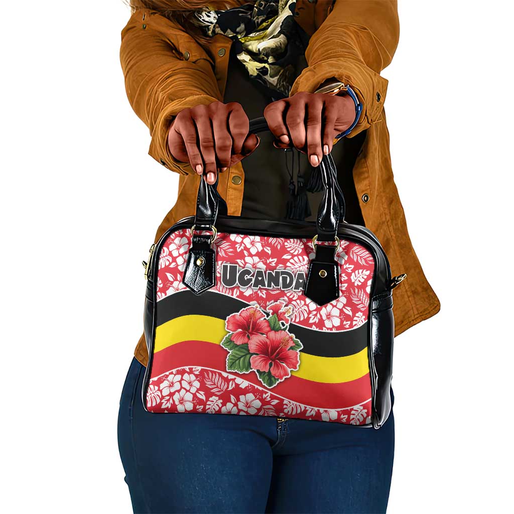 Uganda Shoulder Handbag Hibiscus Flower Pattern And The Pearl Of Africa Text