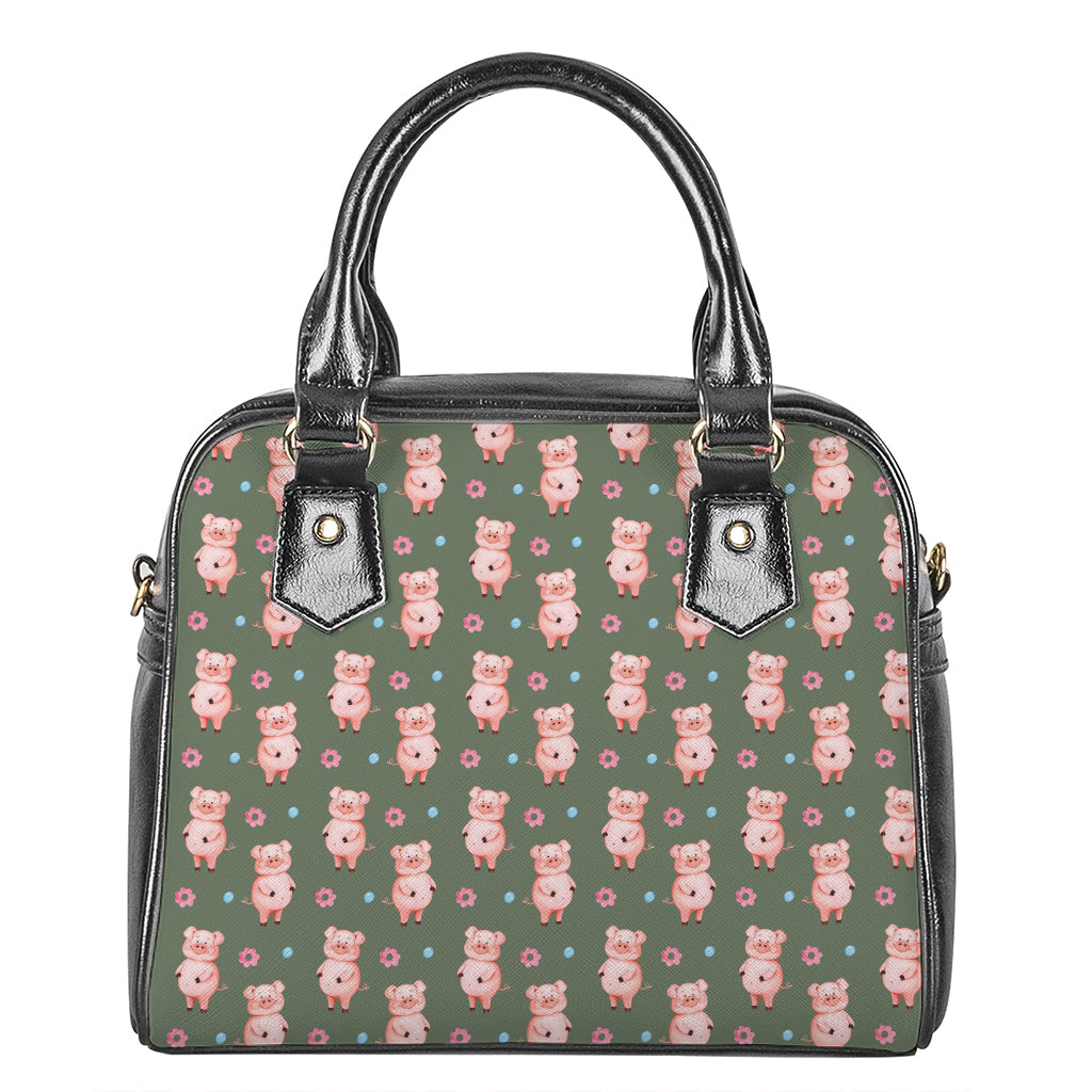Vintage Pink Pig Pattern Print Shoulder Handbag
