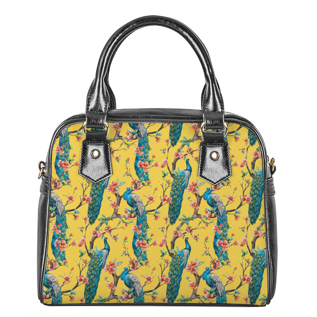 Vintage Watercolor Peacock Print Shoulder Handbag