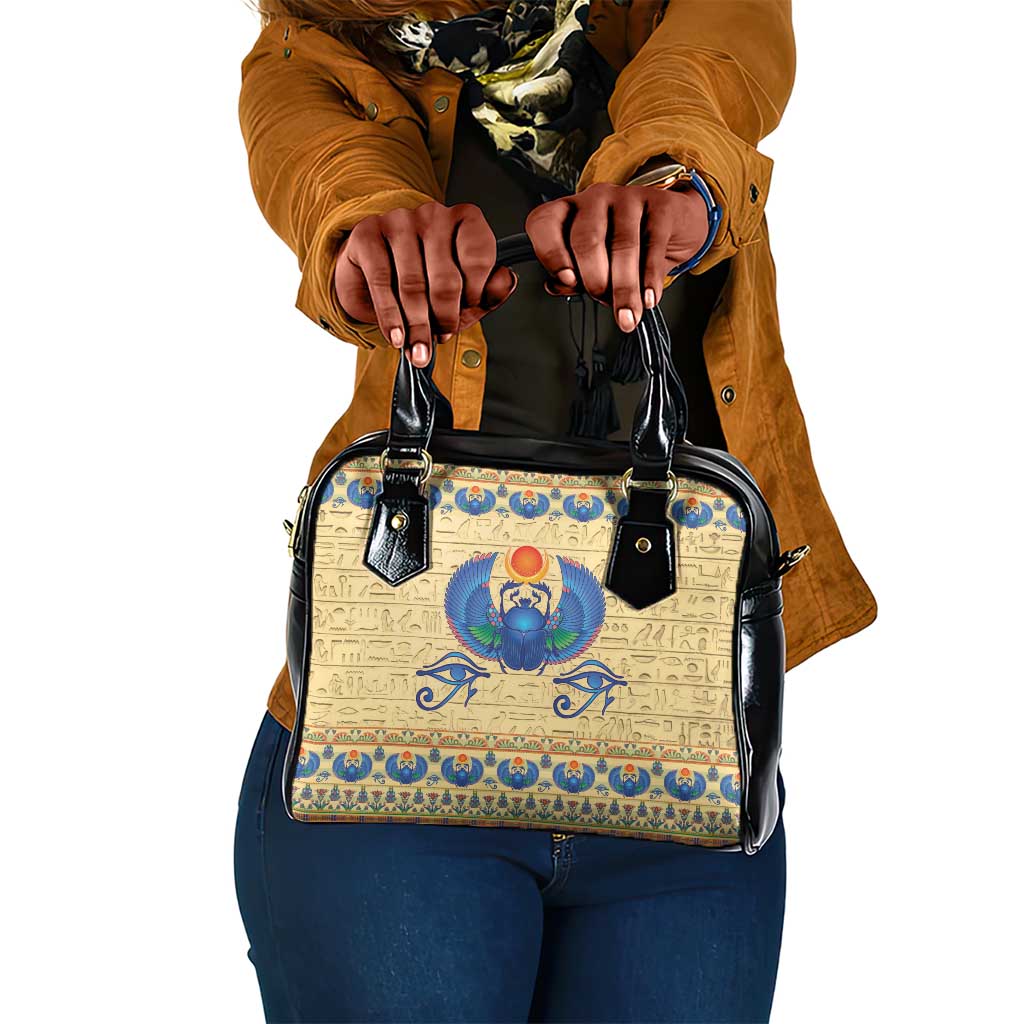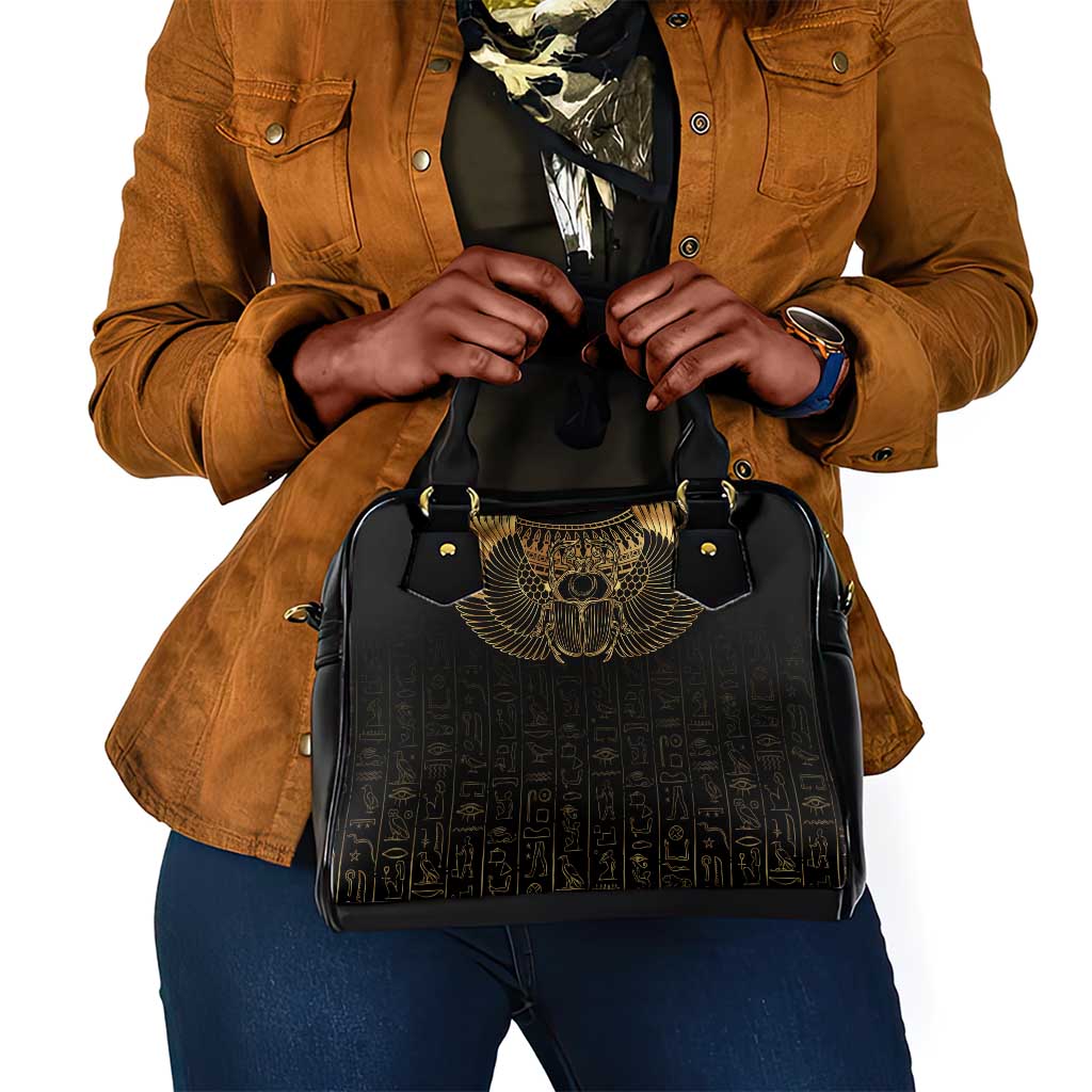 Ancient Egypt Scarab Beetle Shoulder Handbag Hieroglyphs Alphabet Pattern