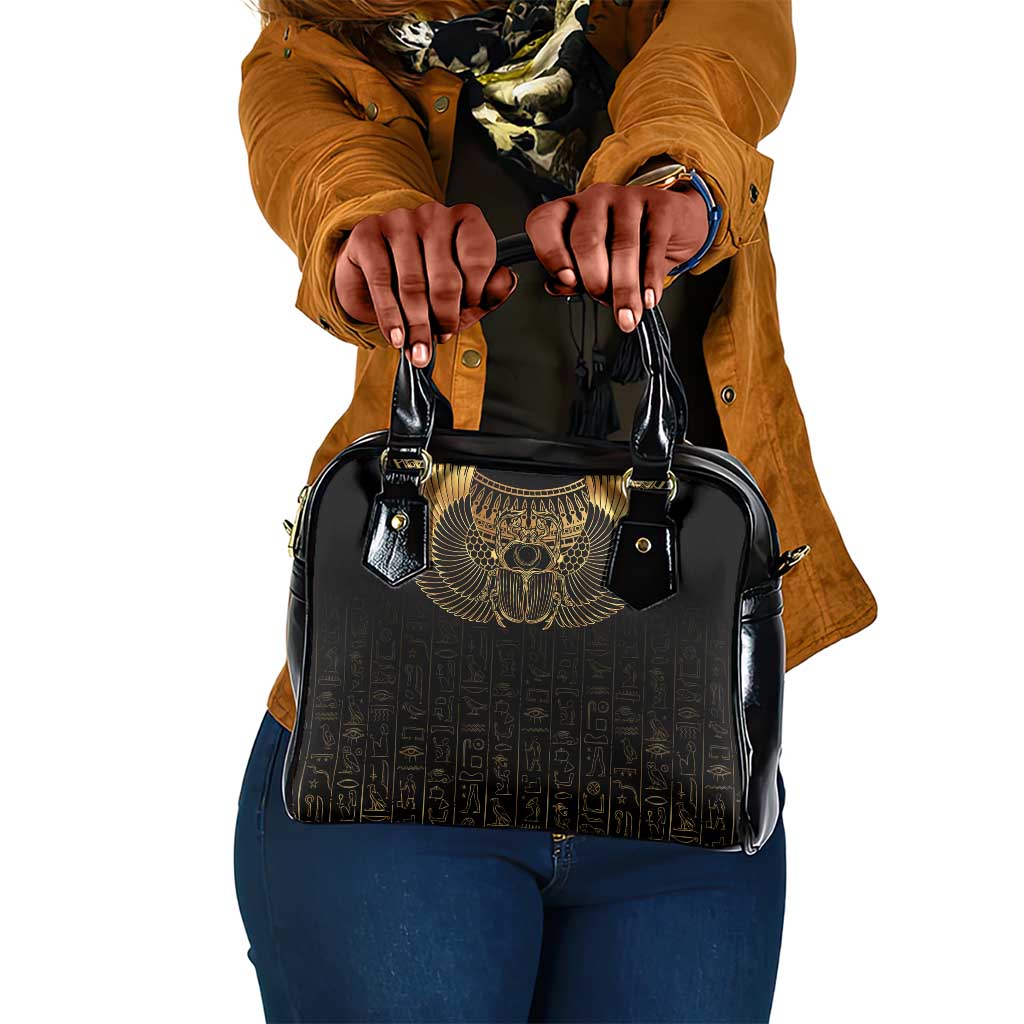 Ancient Egypt Shoulder Handbag Black Gold Scarab