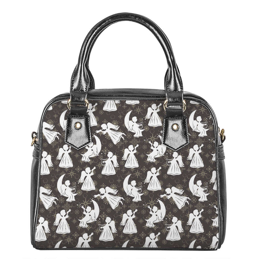Angel And Snowflake Pattern Print Shoulder Handbag