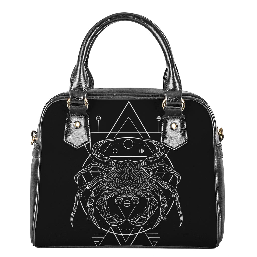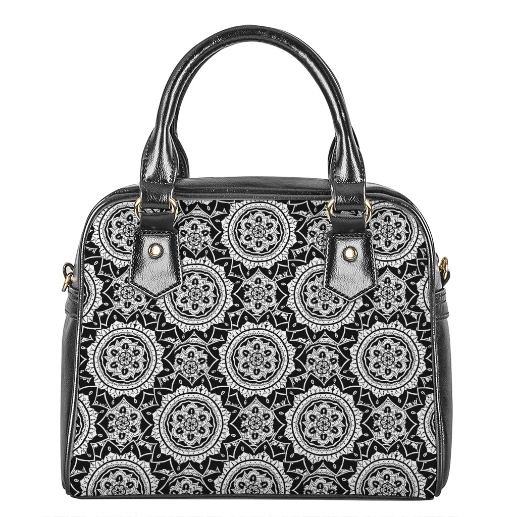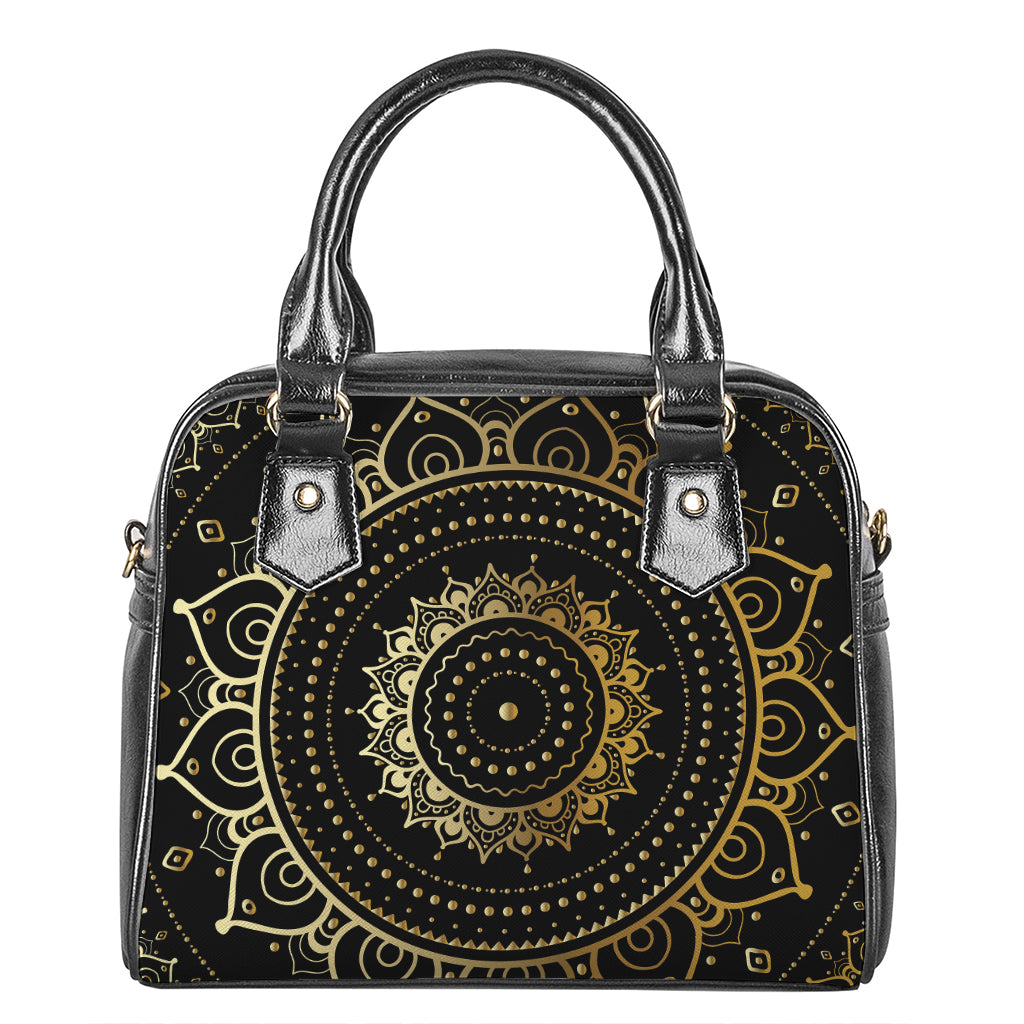Black And Gold Snowflake Pattern Print Shoulder Handbag