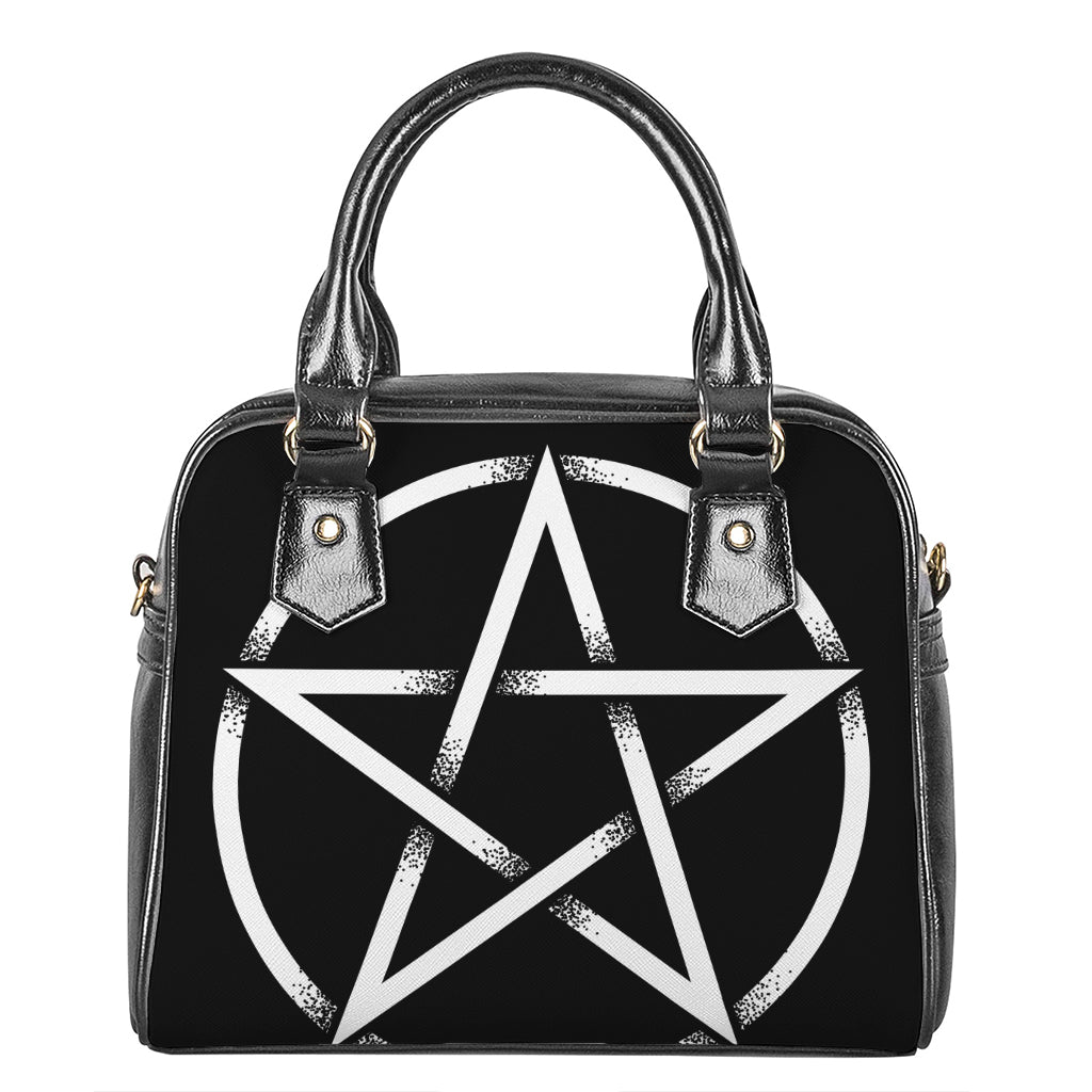 Black And White Pentagram Symbol Print Shoulder Handbag