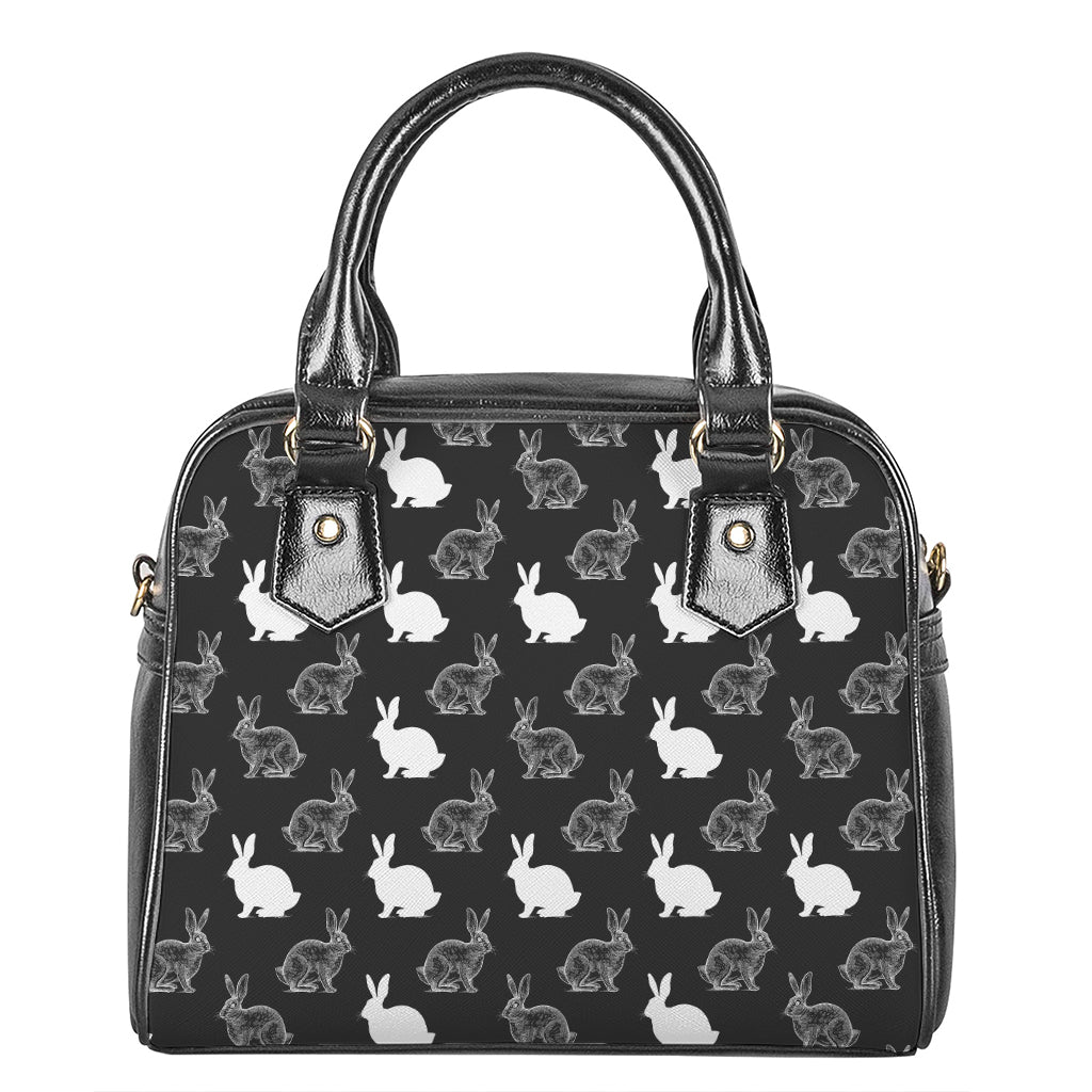 Black And White Rabbit Pattern Print Shoulder Handbag
