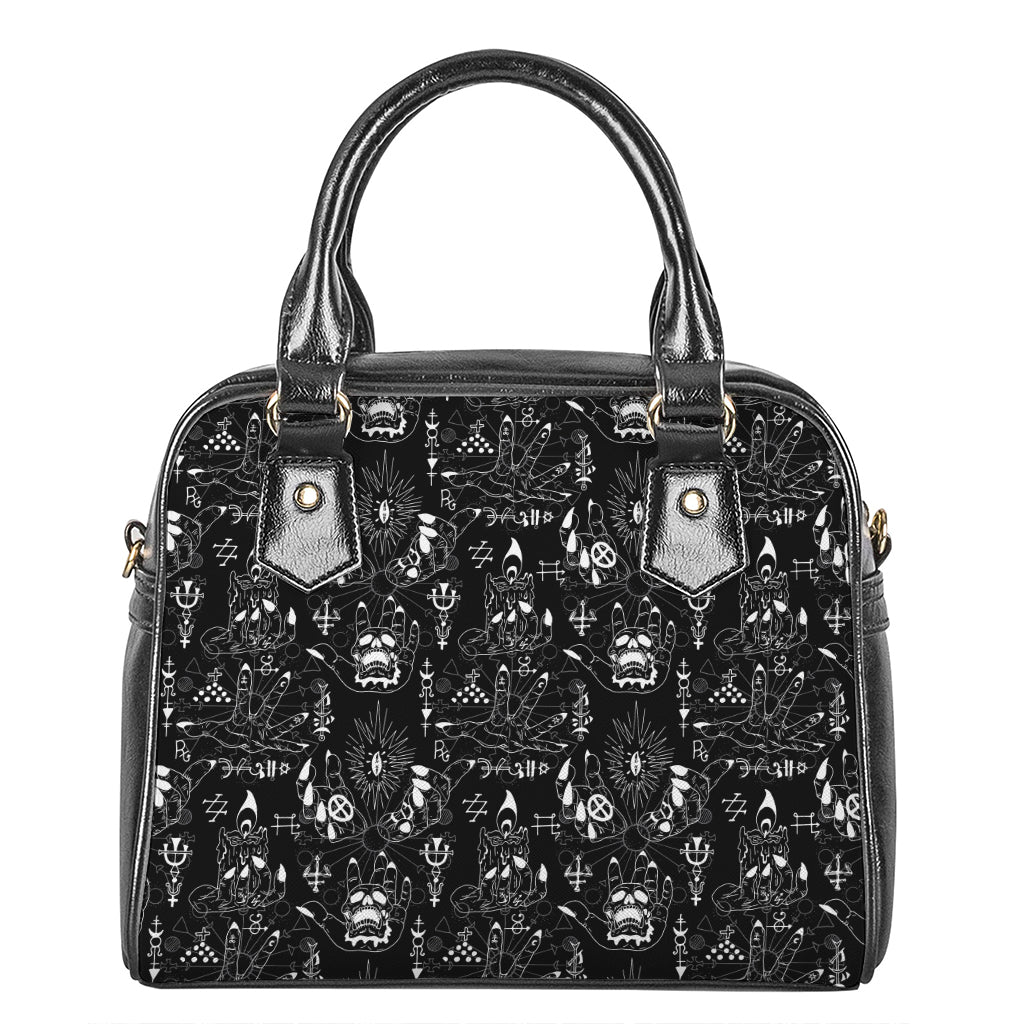 Black And White Supernatural Wicca Print Shoulder Handbag