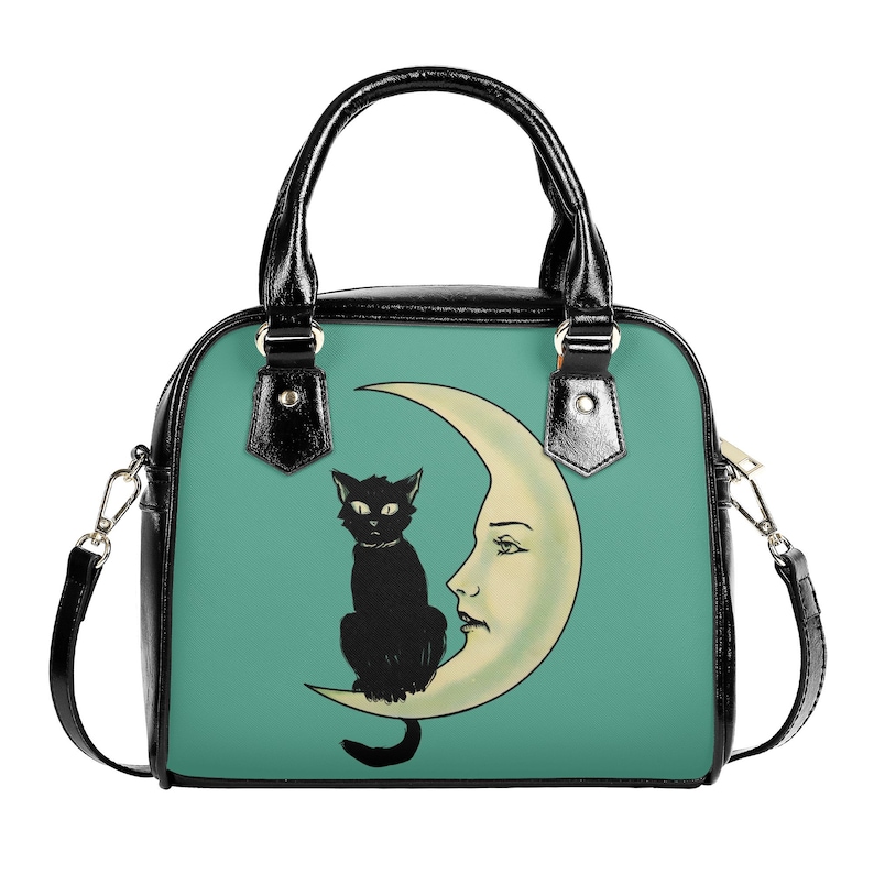 Black Cat Vintage Moon Teal Purse Witchy Bag Gothic Alternative Art Handbag
