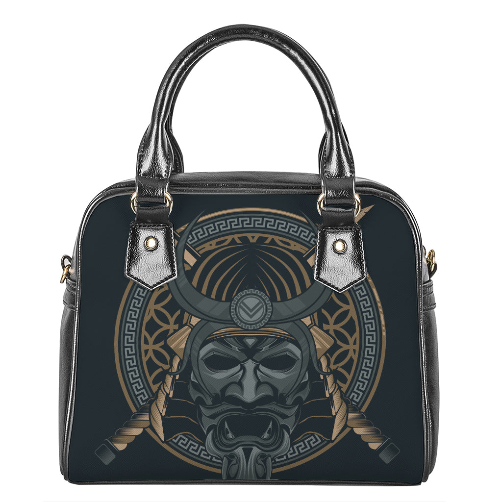 Blue And Black Japanese Pattern Print Shoulder Handbag