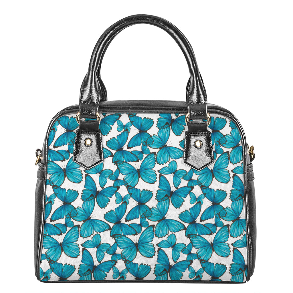 Blue Watercolor Butterfly Pattern Print Shoulder Handbag