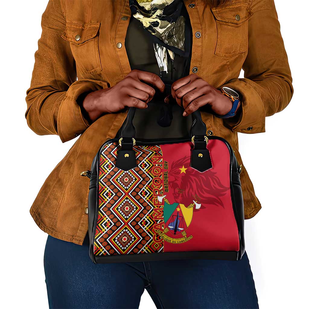Cameroon National Day Shoulder Handbag Lion Mix Coat Of Arms Style
