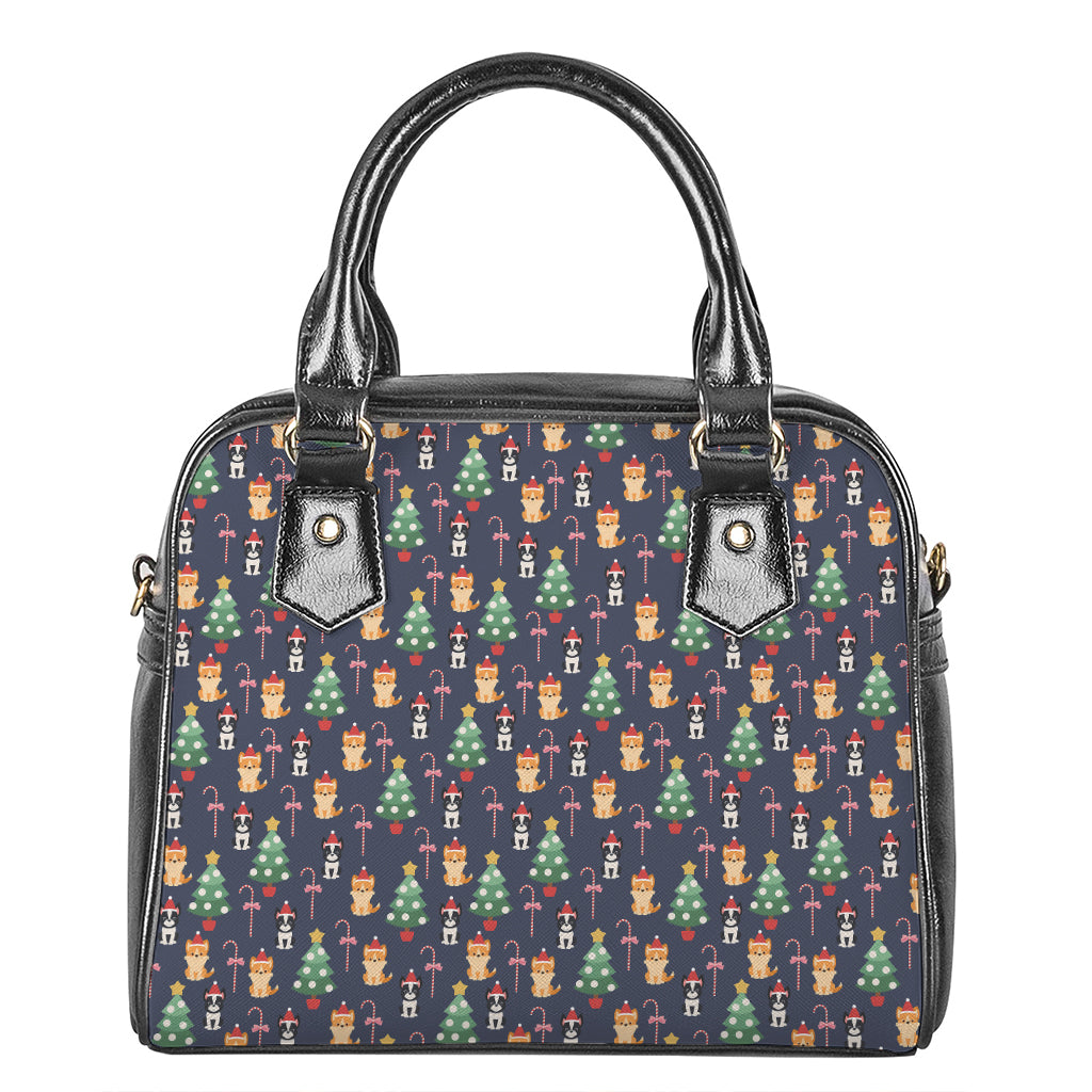 Christmas Boston Terrier And Corgi Print Shoulder Handbag