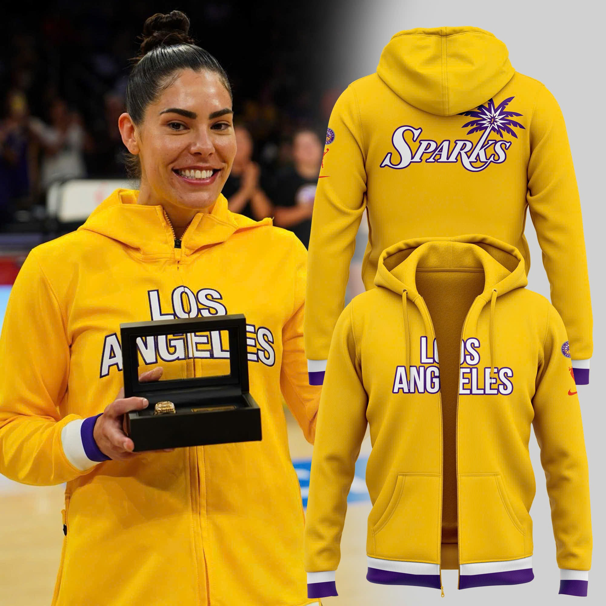 2025 Uniform Los Angeles Sparks Zip Hoodie Gifts For Basketball Fan