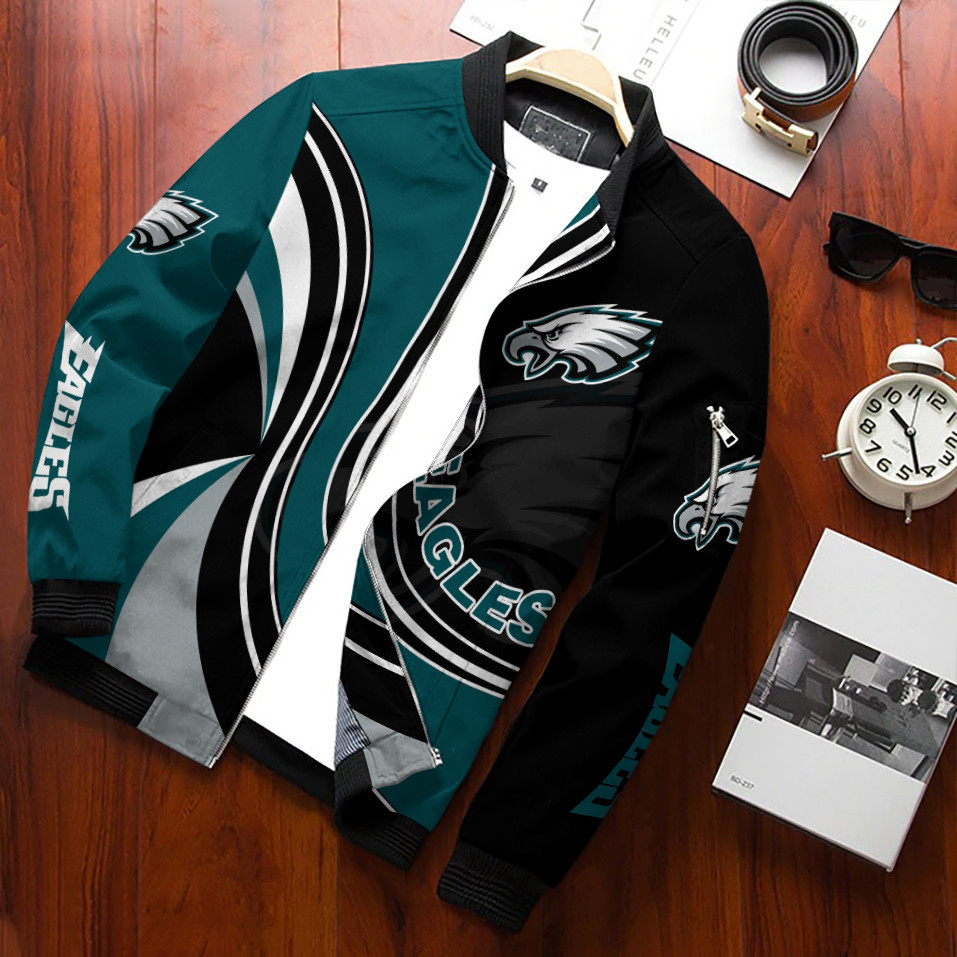 Philadelphia Eagles Football Team Bomber Jacket Full Zip Up Jacket For Nfl Fan Sport College Fashion