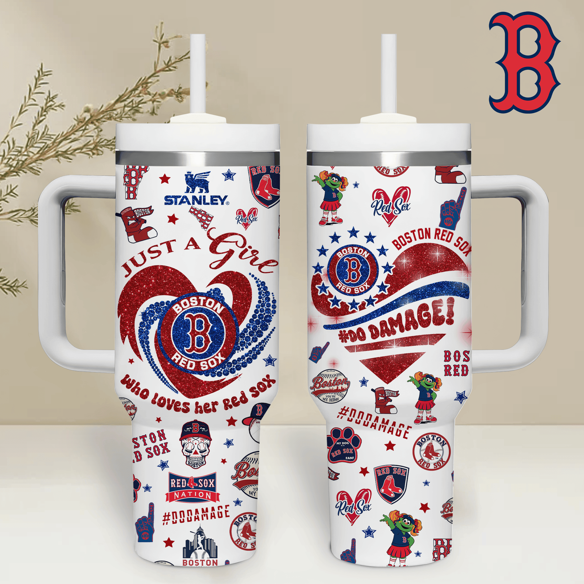 Boston Red Sox Mlb Custom Stanley Quencher 40Oz Stainless Steel Tumbler