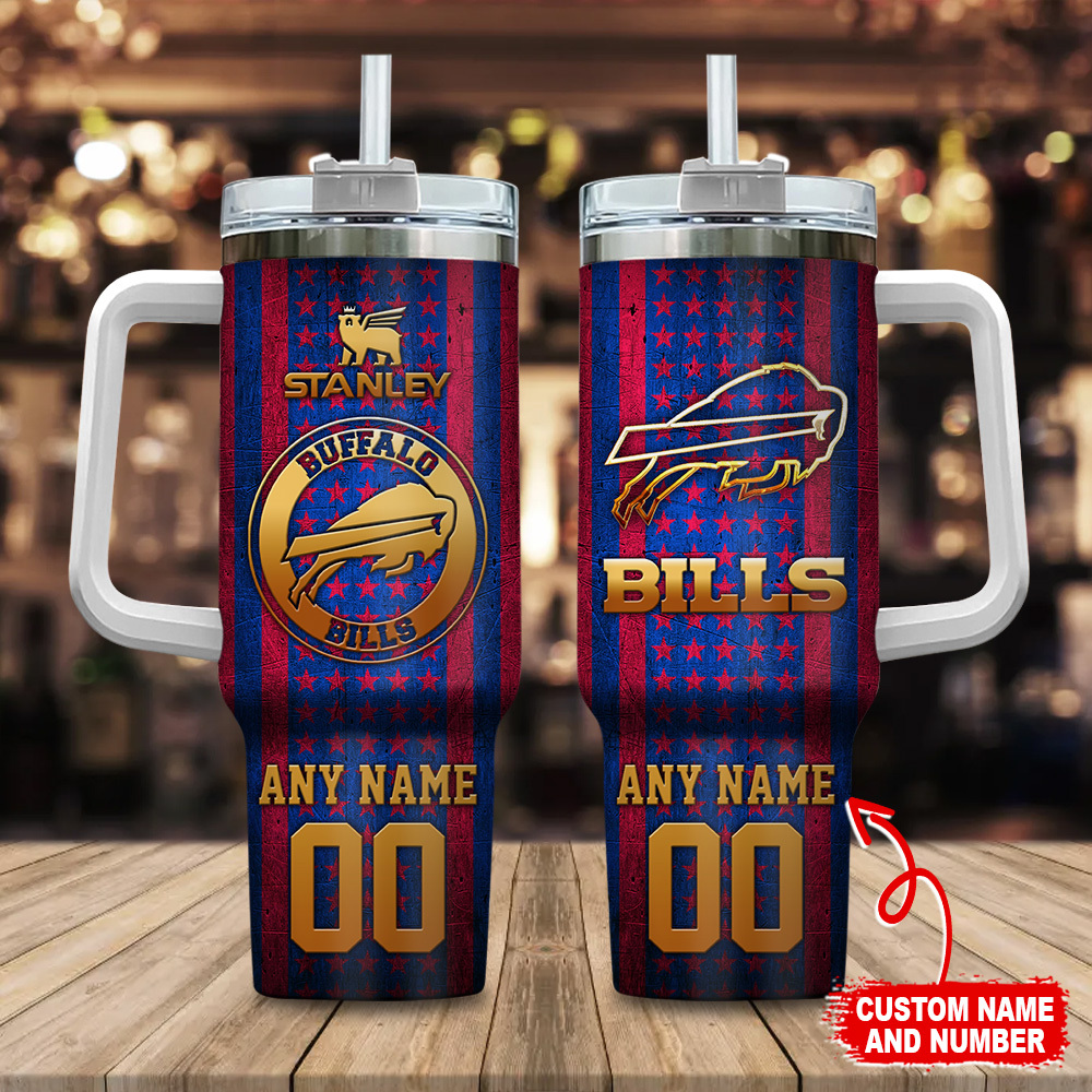 Buffalo Bills Nfl Golden Logos Us Flag Custom Stanley Quencher 40Oz Stainless Steel Tumbler With Handle