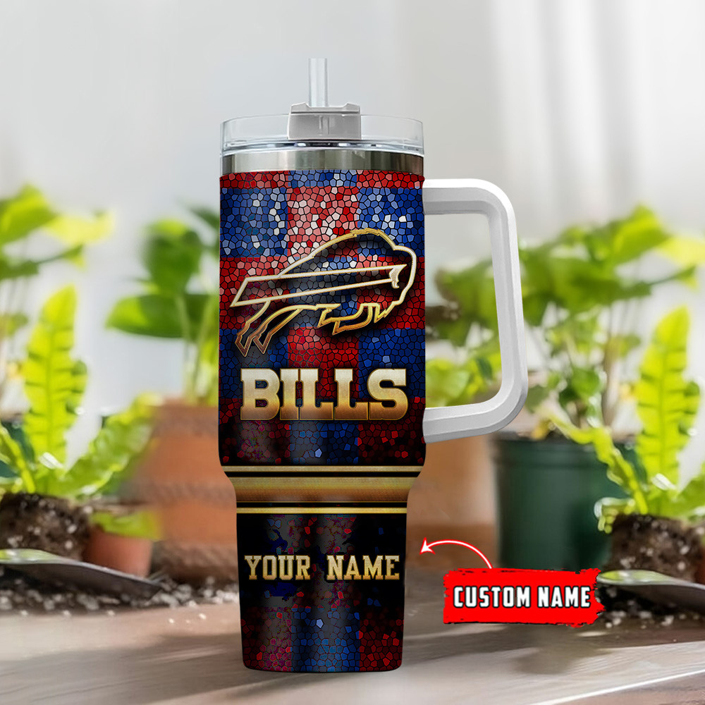 Buffalo Bills Nfl Glitter Custom Stanley Quencher 40Oz Stainless Steel Tumbler With Handle