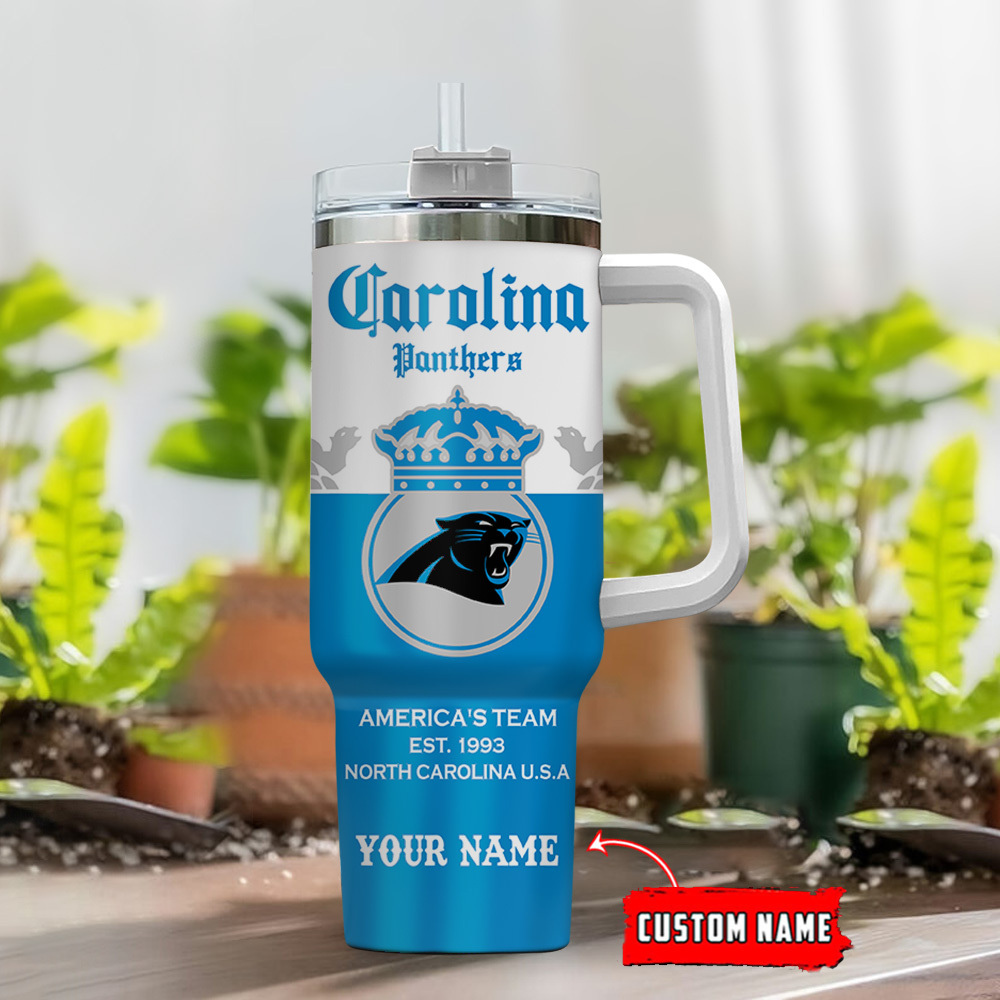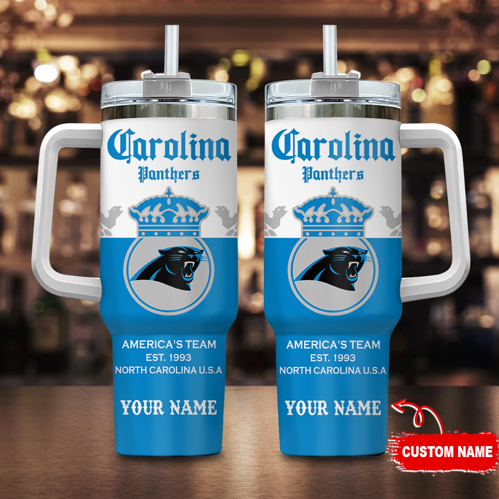 Carolina Panthers Nfl Corona Extra Custom Stanley Quencher 40Oz Stainless Steel Tumbler With Handle