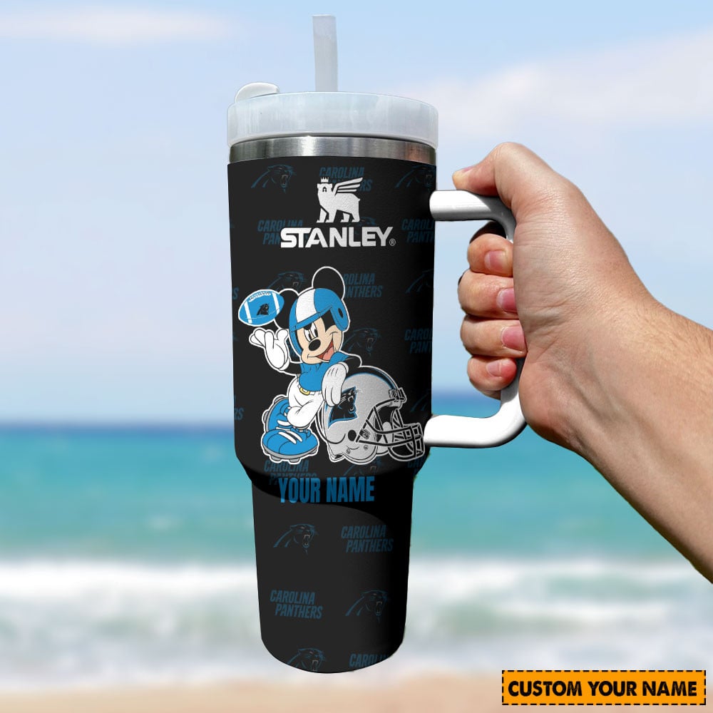 Carolina Panthers Nfl Mickey Mouse Custom Stanley Quencher 40Oz Stainless Steel Tumbler With Handle