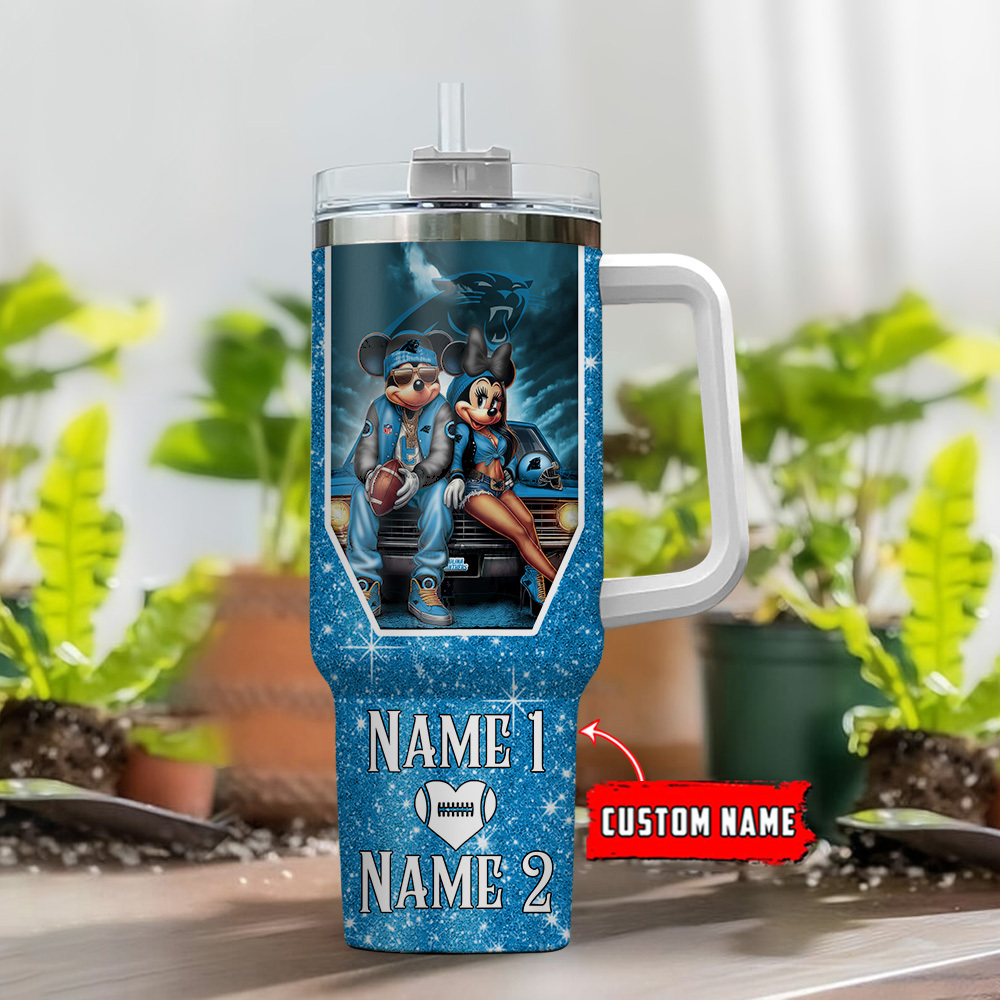 Carolina Panthers Nfl Mickey And Minnie Couple Custom Stanley Quencher 40Oz Stainless Steel Tumbler With Handle