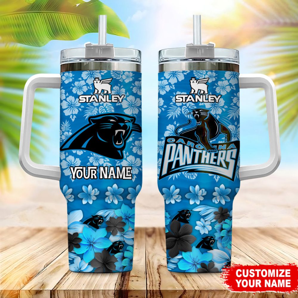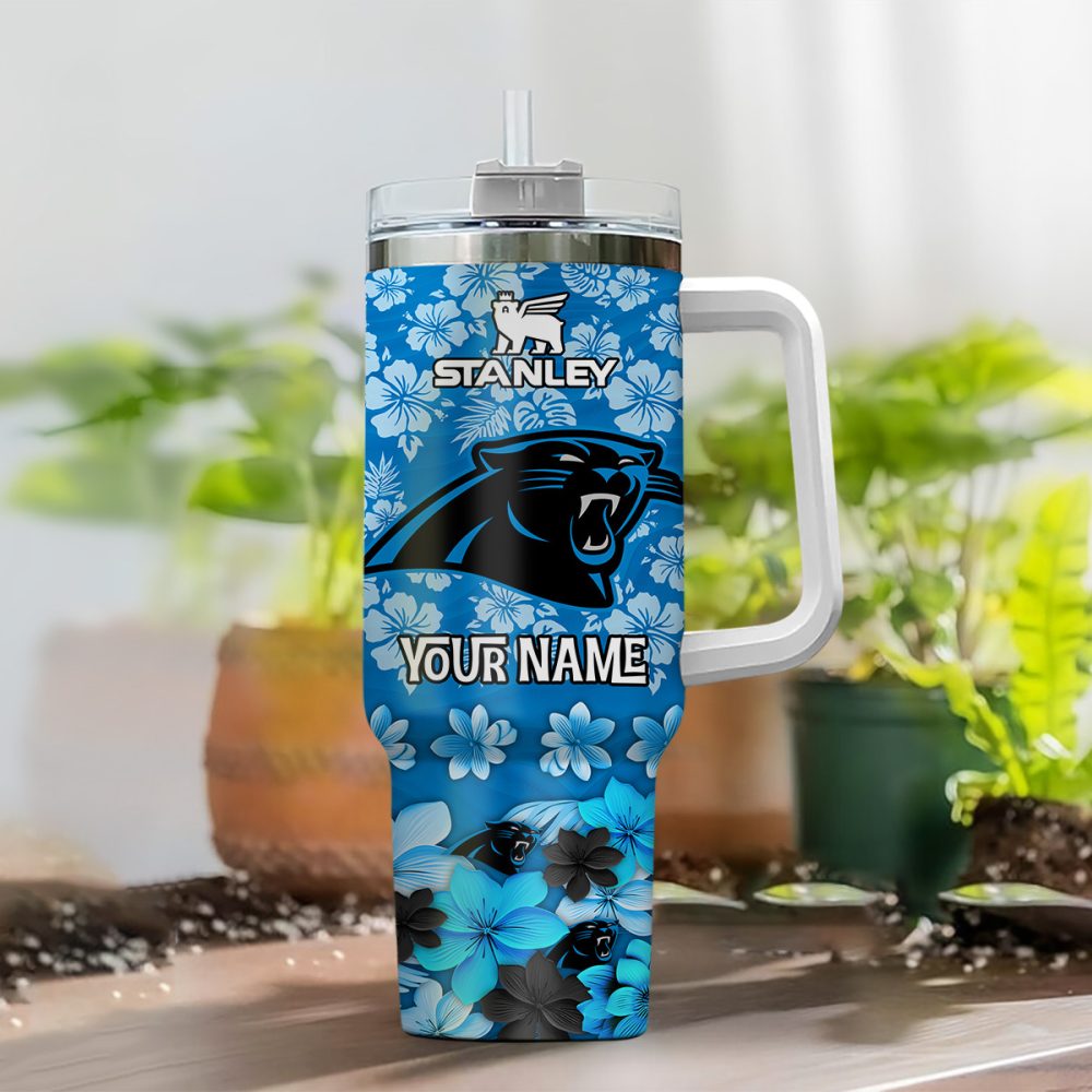 Carolina Panthers Nfl Tropical Floral Custom Stanley Quencher 40Oz Stainless Steel