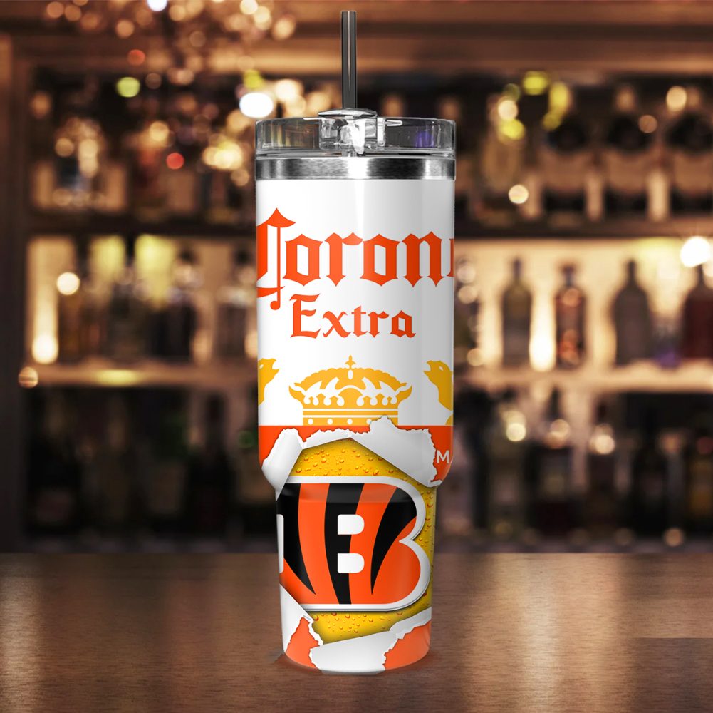 Cincinnati Bengals Nfl Corona Extra Custom Stanley Quencher 40Oz Stainless Steel Tumbler With Handle