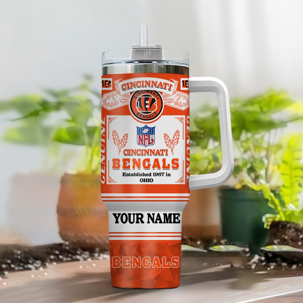 Cincinnati Bengals Nfl Custom Stanley Quencher 40Oz Stainless Steel Tumbler With Handle