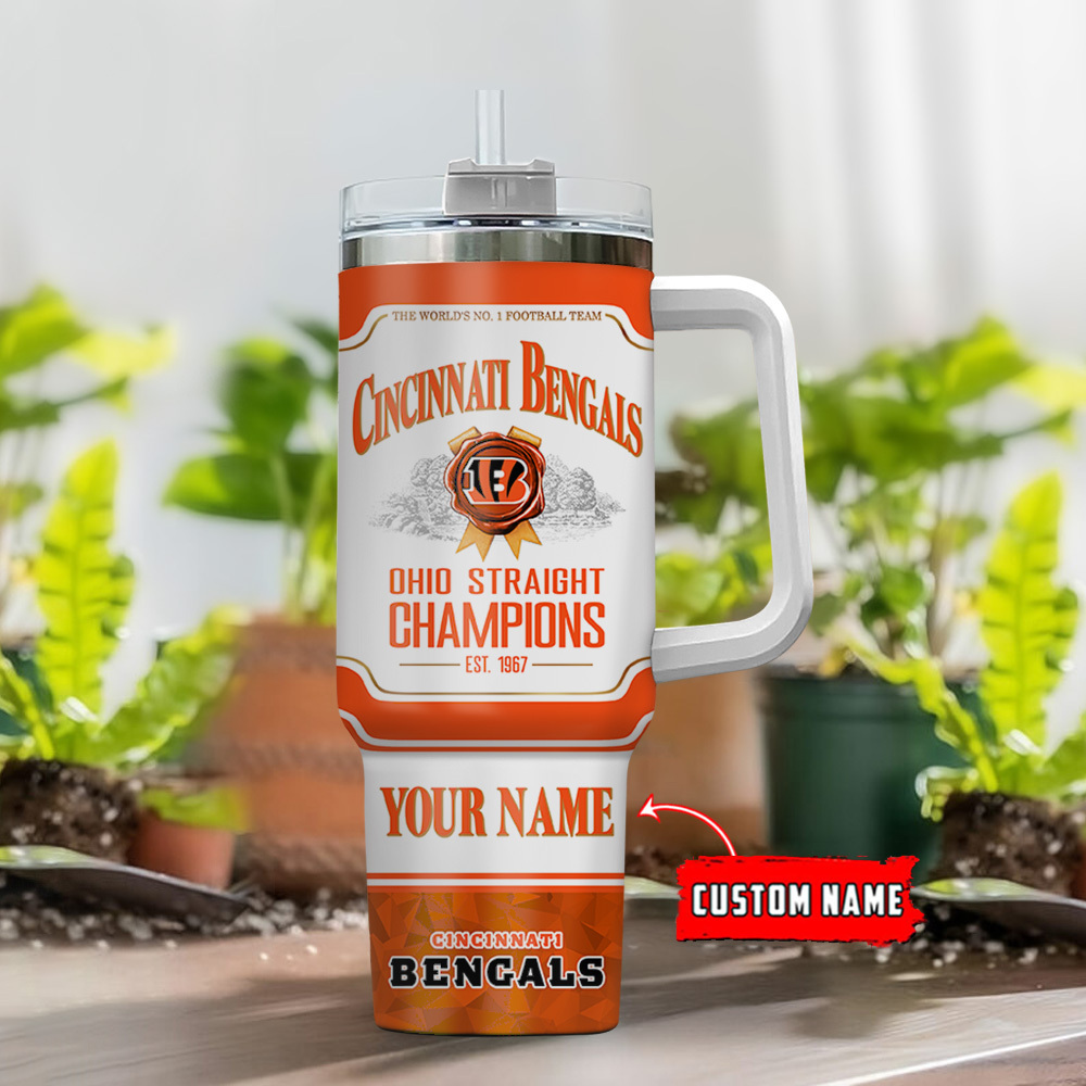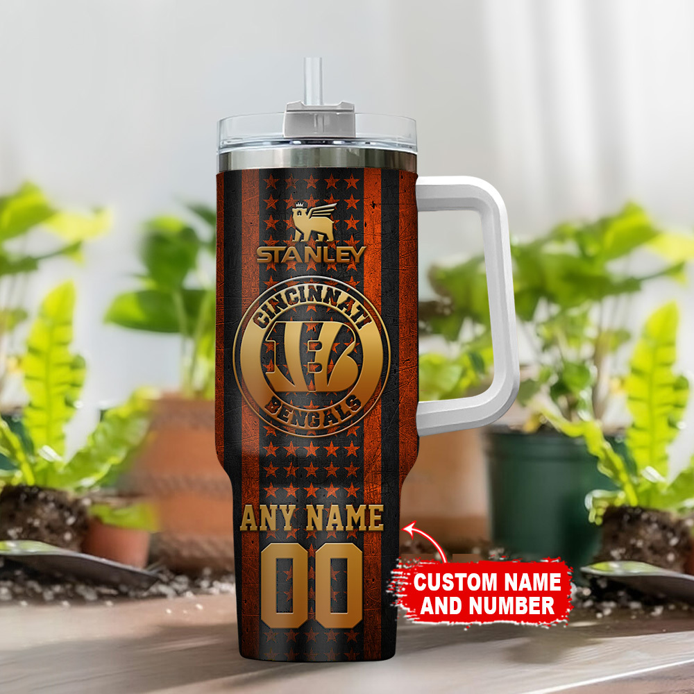 Cincinnati Bengals Nfl Diehard Fan Custom Stanley Quencher 40Oz Stainless Steel Tumbler With Handle