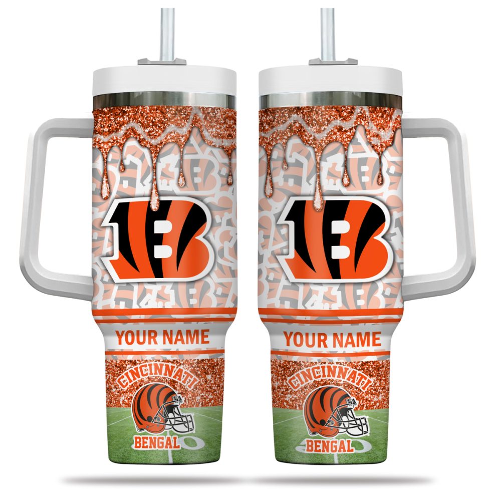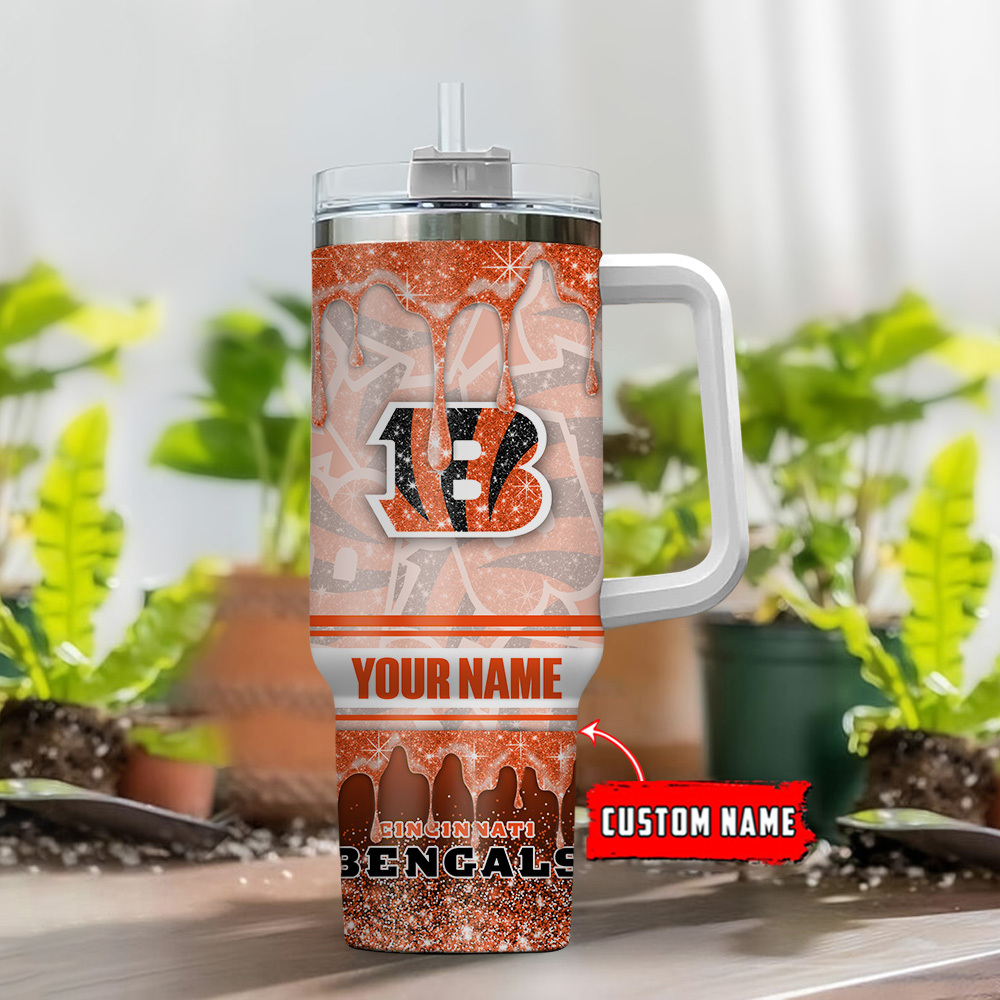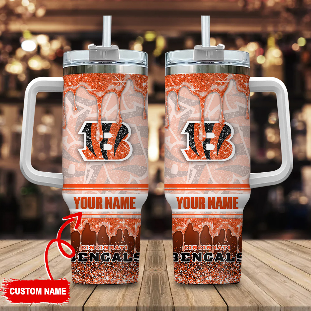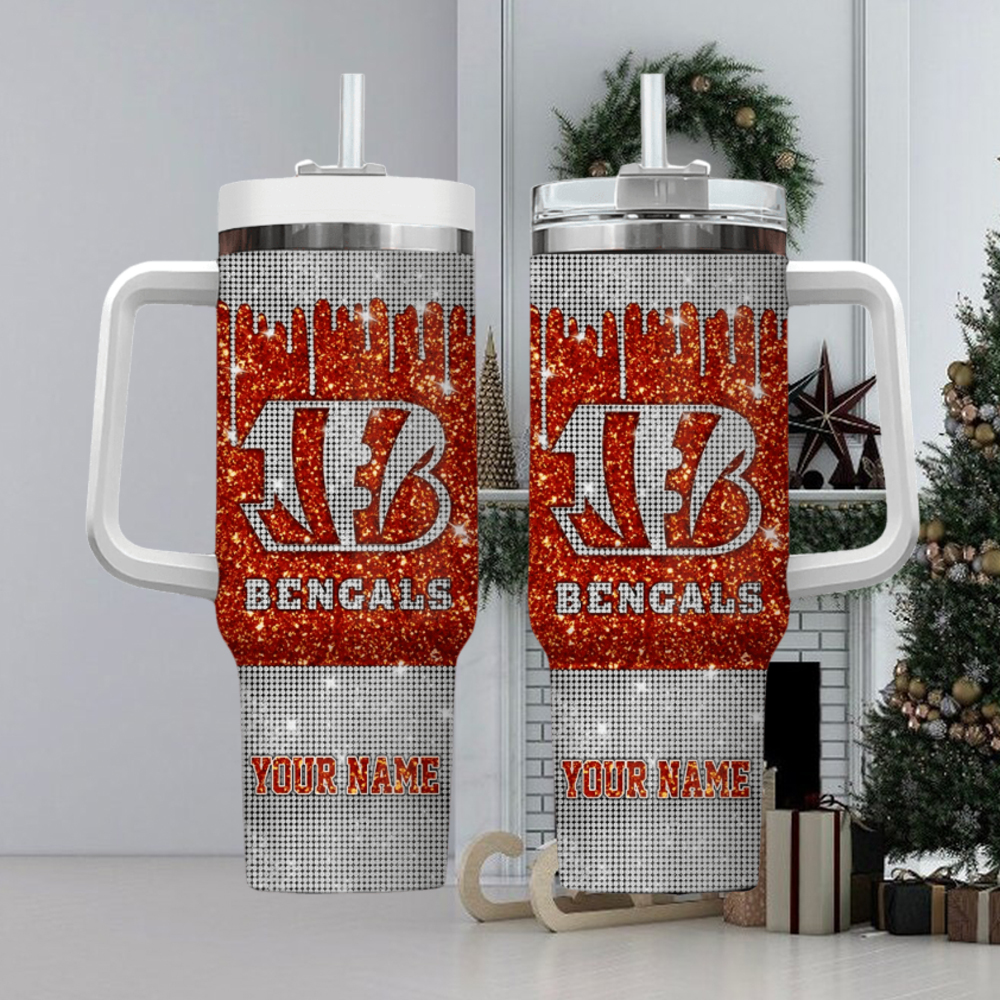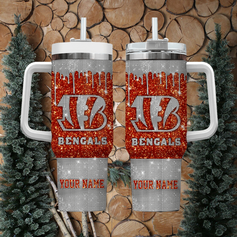 Cincinnati Bengals Nfl Glitter Custom Stanley Quencher 40Oz Stainless Steel Tumbler With Handle