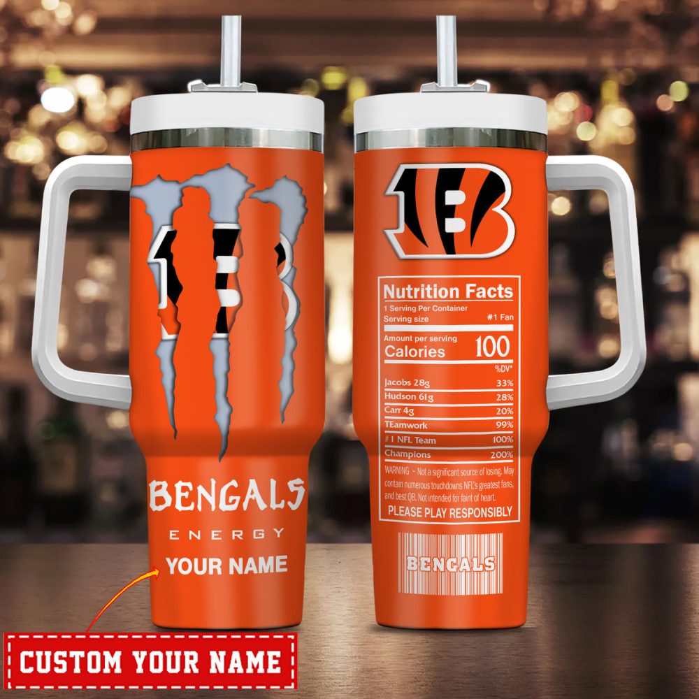 Cincinnati Bengals Nfl Energy Nutrition Facts Custom Stanley Quencher 40Oz Stainless Steel Tumbler With Handle