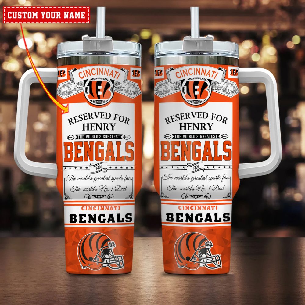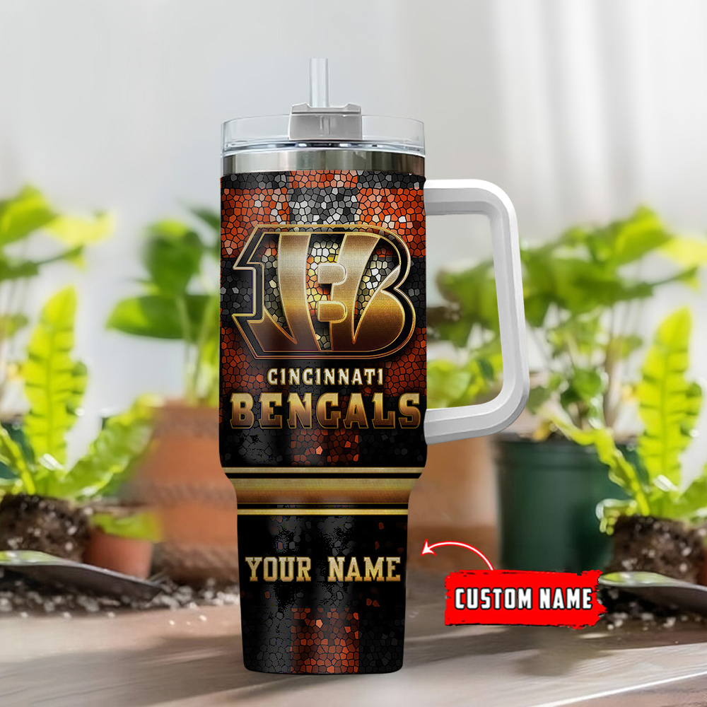 Cincinnati Bengals Nfl Fan Cave Custom Stanley Quencher 40Oz Stainless Steel Tumbler With Handle