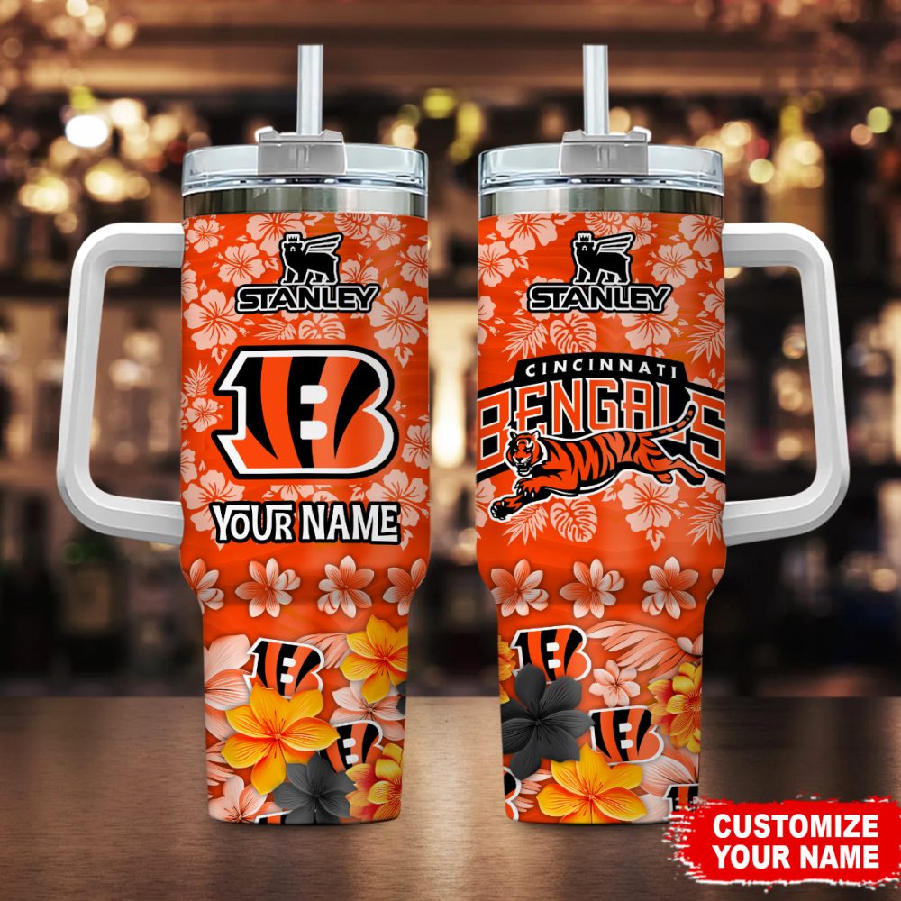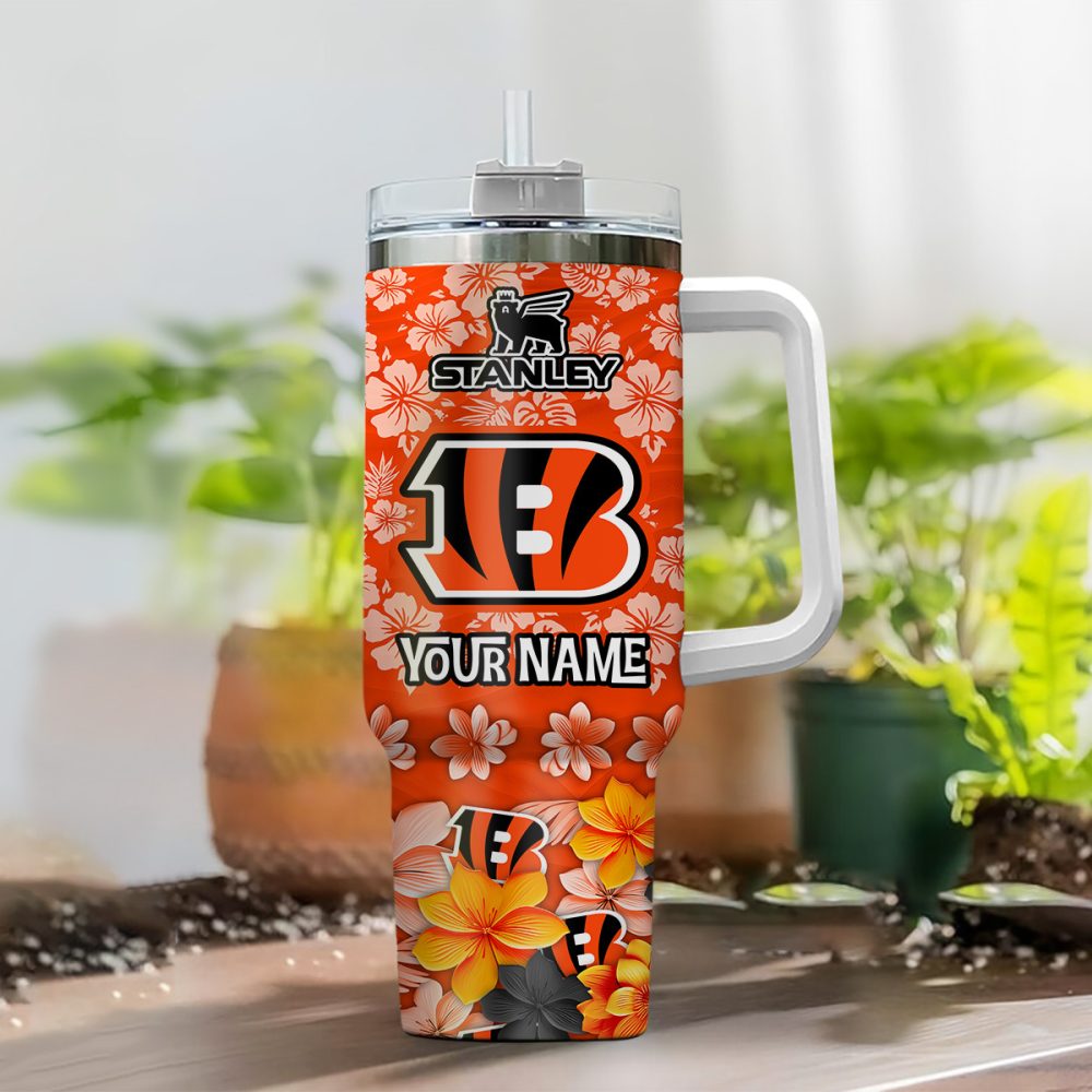 Cincinnati Bengals Nfl Tropical Floral Custom Stanley Quencher 40Oz Stainless Steel