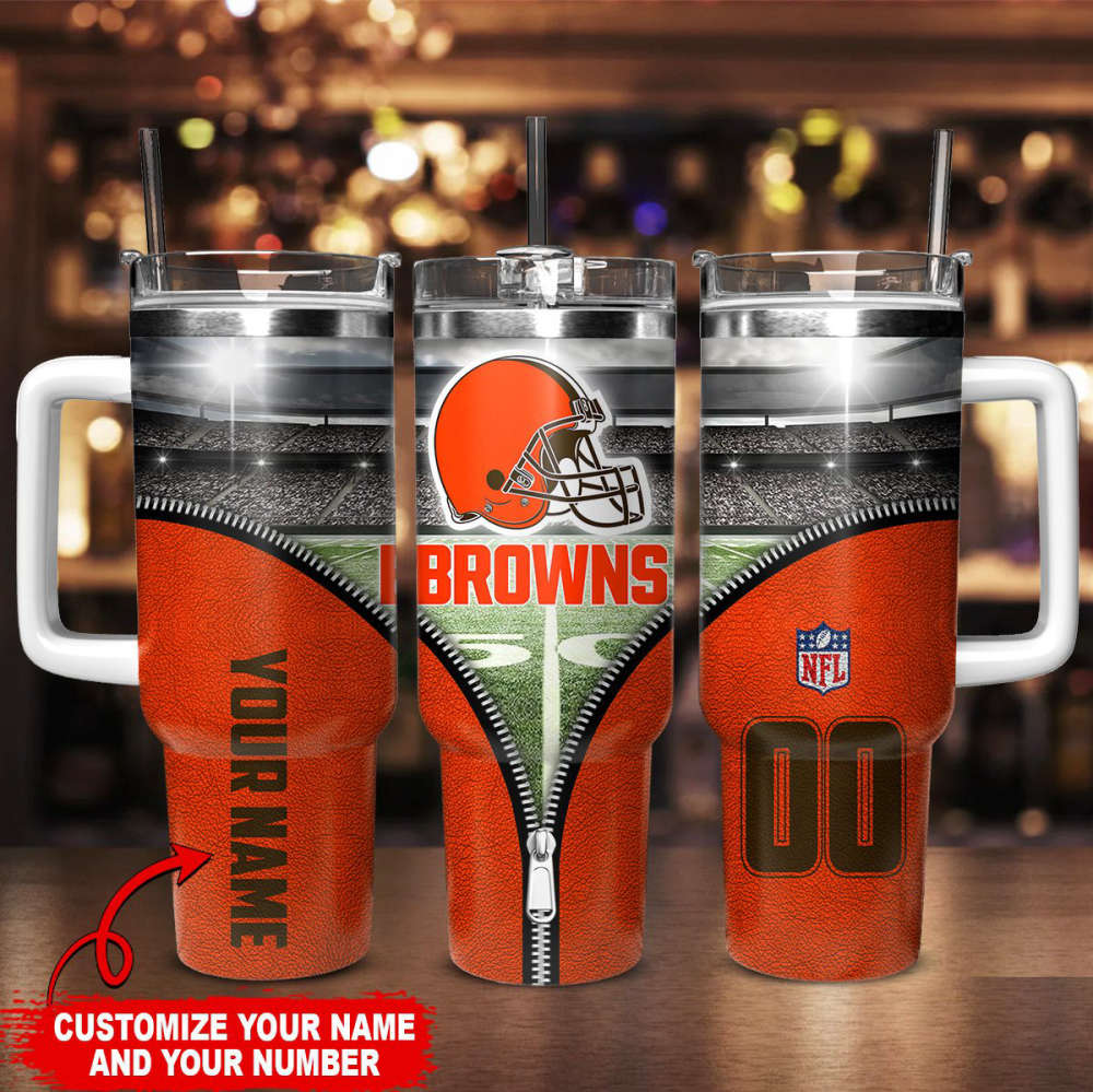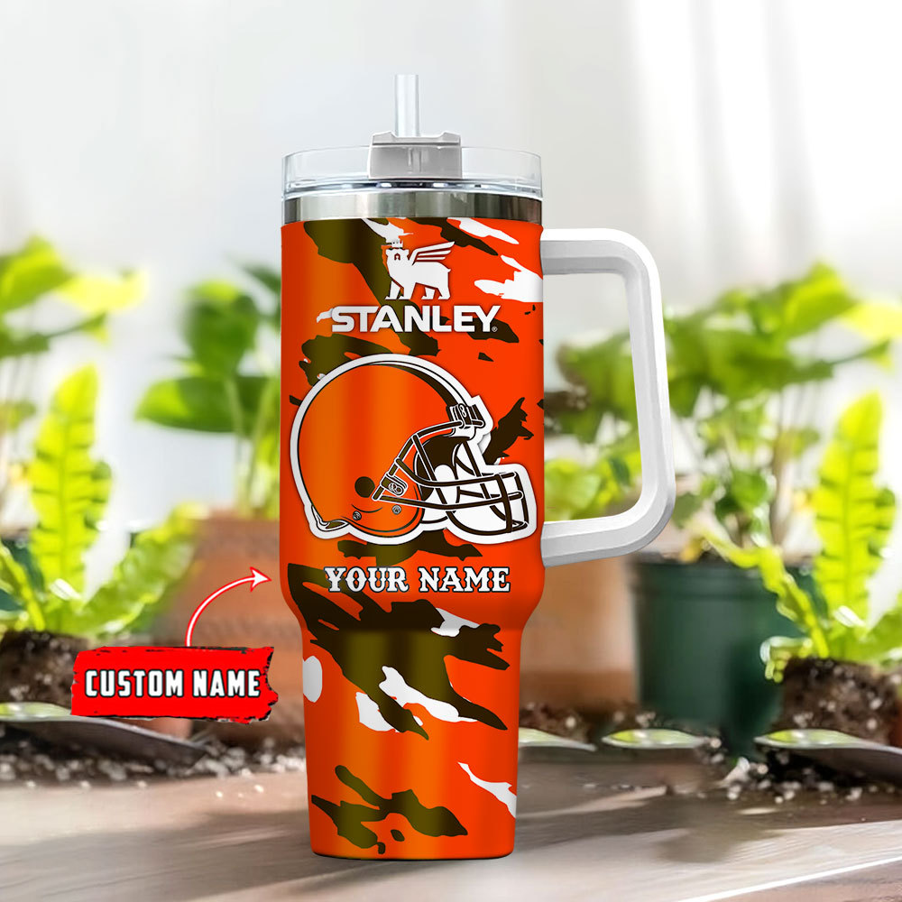 Cleveland Browns Nfl Custom Stanley Quencher 40Oz Stainless Steel Tumbler With Handle