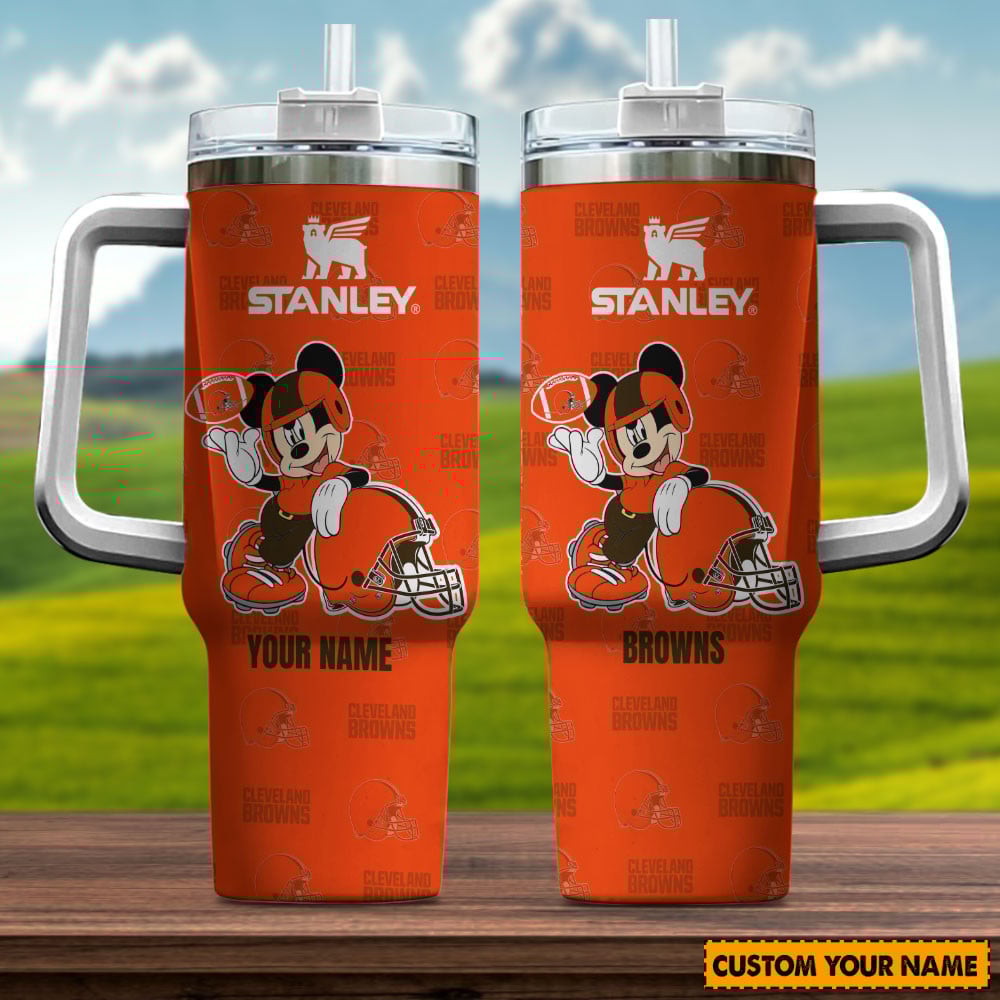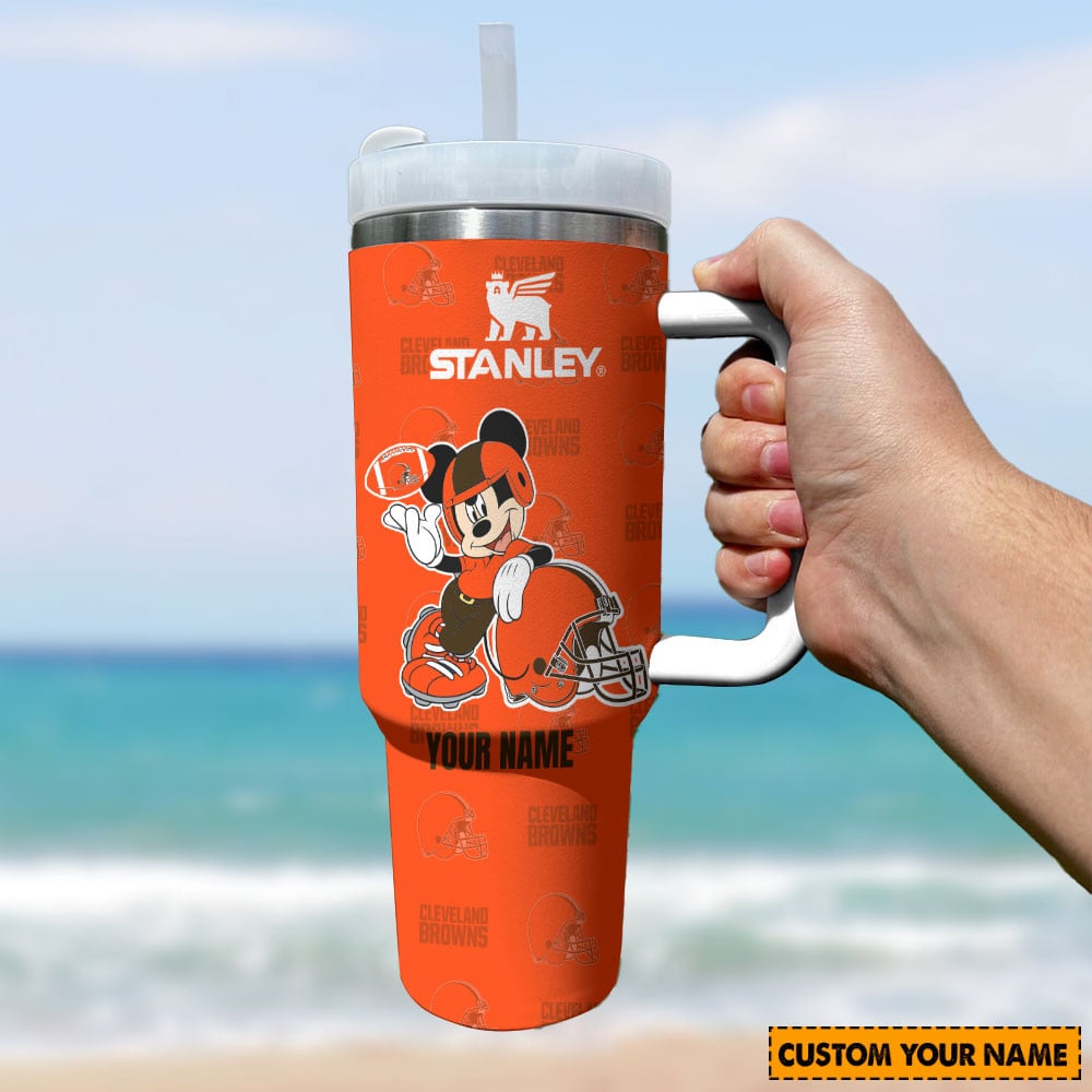 Cleveland Browns Nfl Mickey Mouse Custom Stanley Quencher 40Oz Stainless Steel Tumbler With Handle