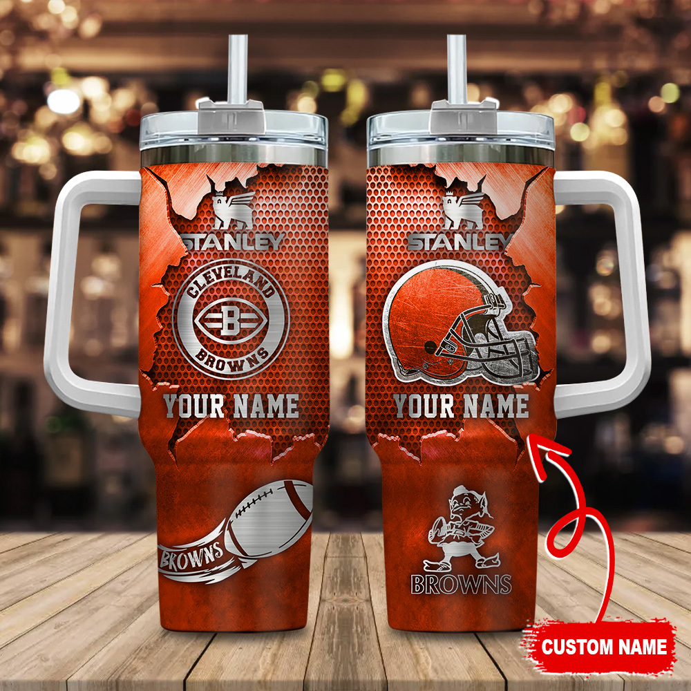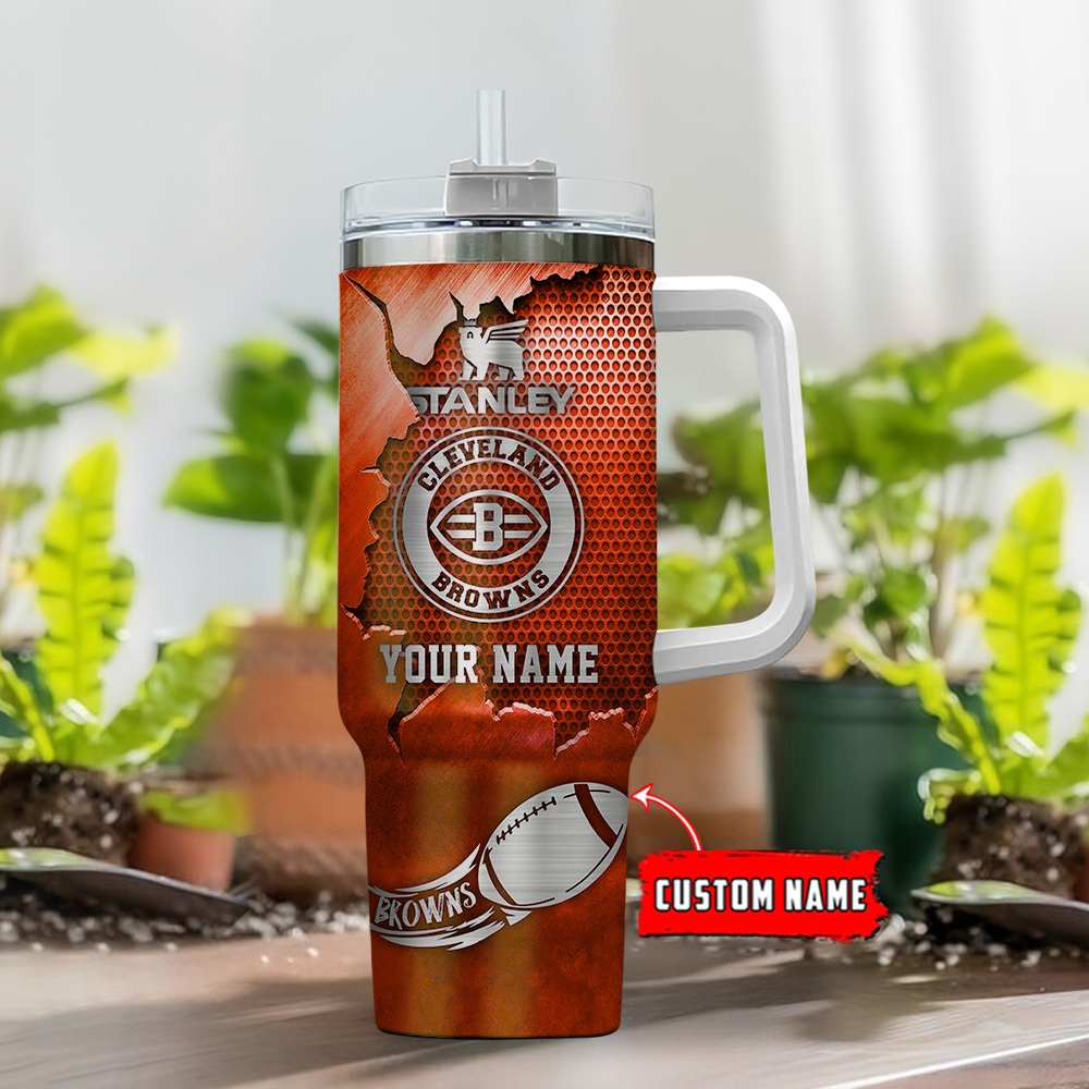 Cleveland Browns Nfl Metal Style Custom Stanley Quencher 40Oz Stainless Steel Tumbler With Handle