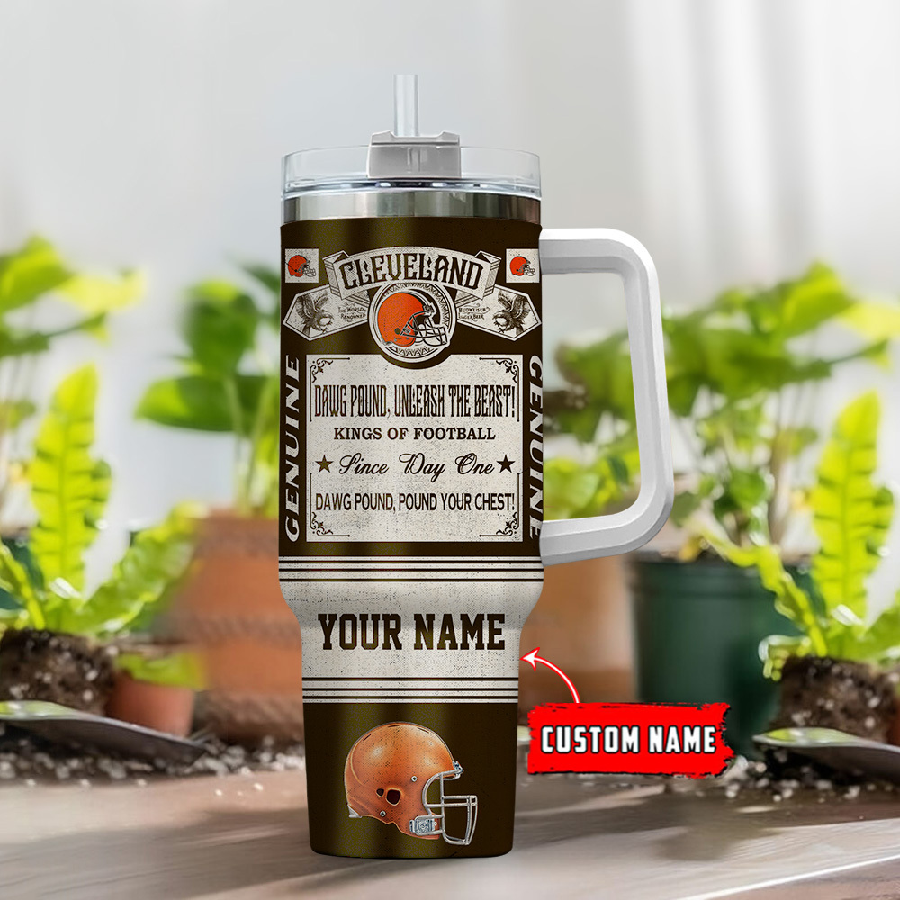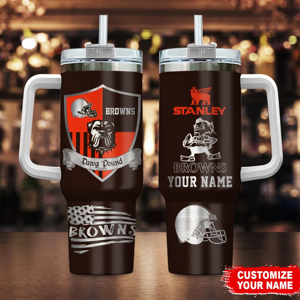Cleveland Browns Nfl Original Diehard Fan Custom Stanley Quencher 40Oz Stainless Steel Tumbler With Handle